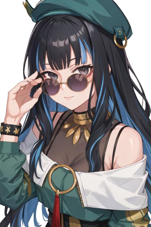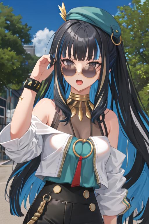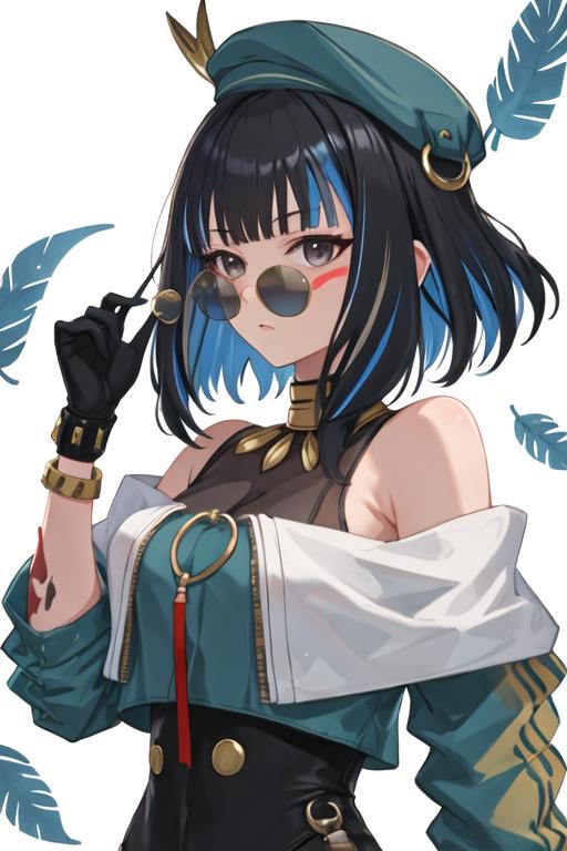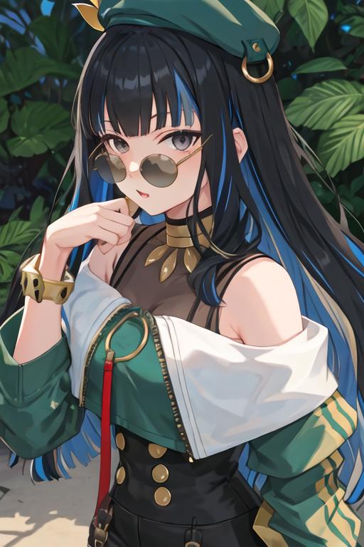 The trigger word is tlaloc_fgo, and the recommended tags are best quality, masterpiece, highres, solo, {tlaloc_fgo:1.15}, bangs, black_hair, blue_hair, multicolored_hair, long_hair, hat, ???????, jewelry, streaked_hair, black_eyes.
