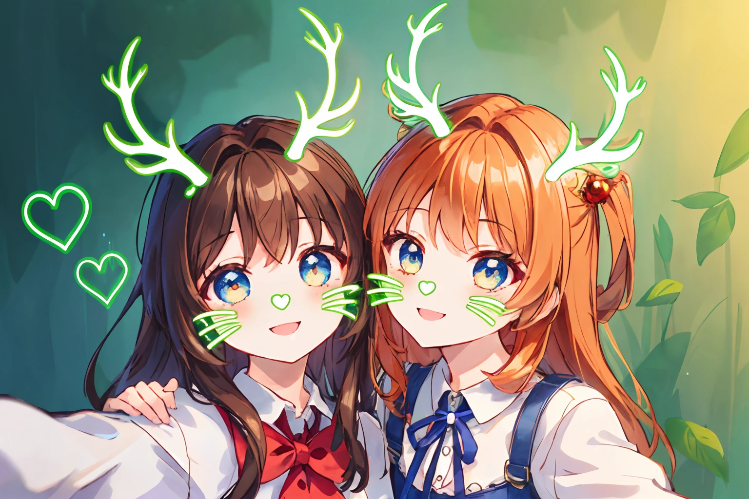 Currently supports cat ears, rabbit ears, antlers, whiskers and nose, hearts.