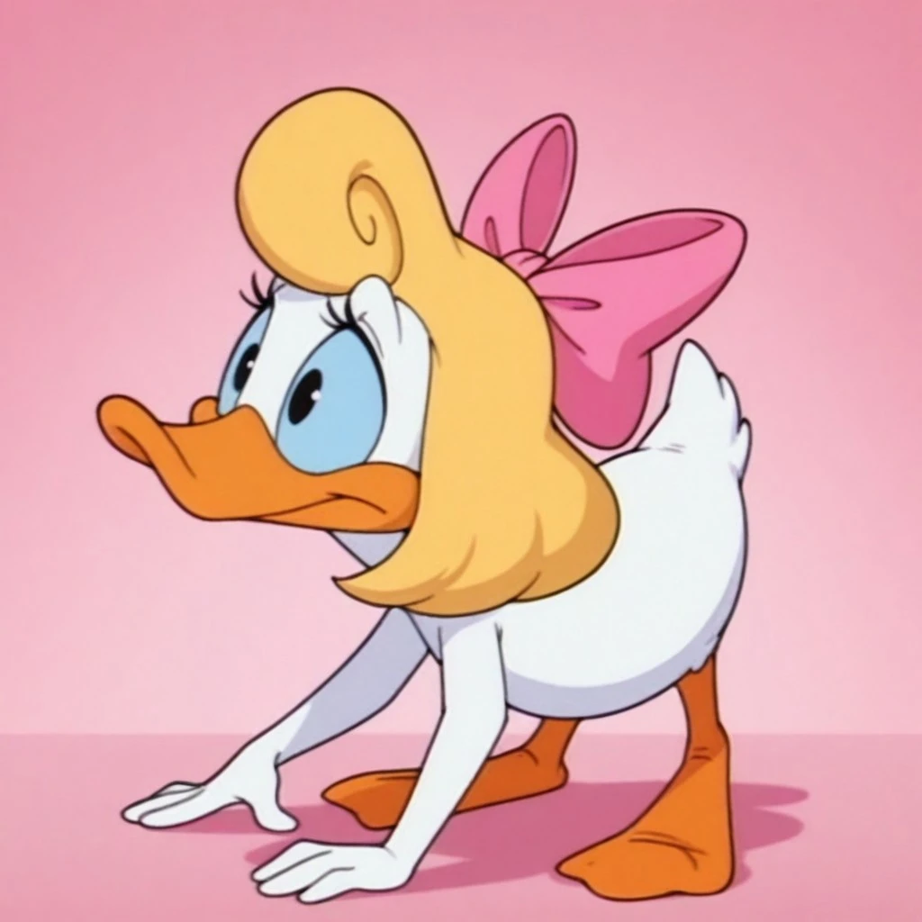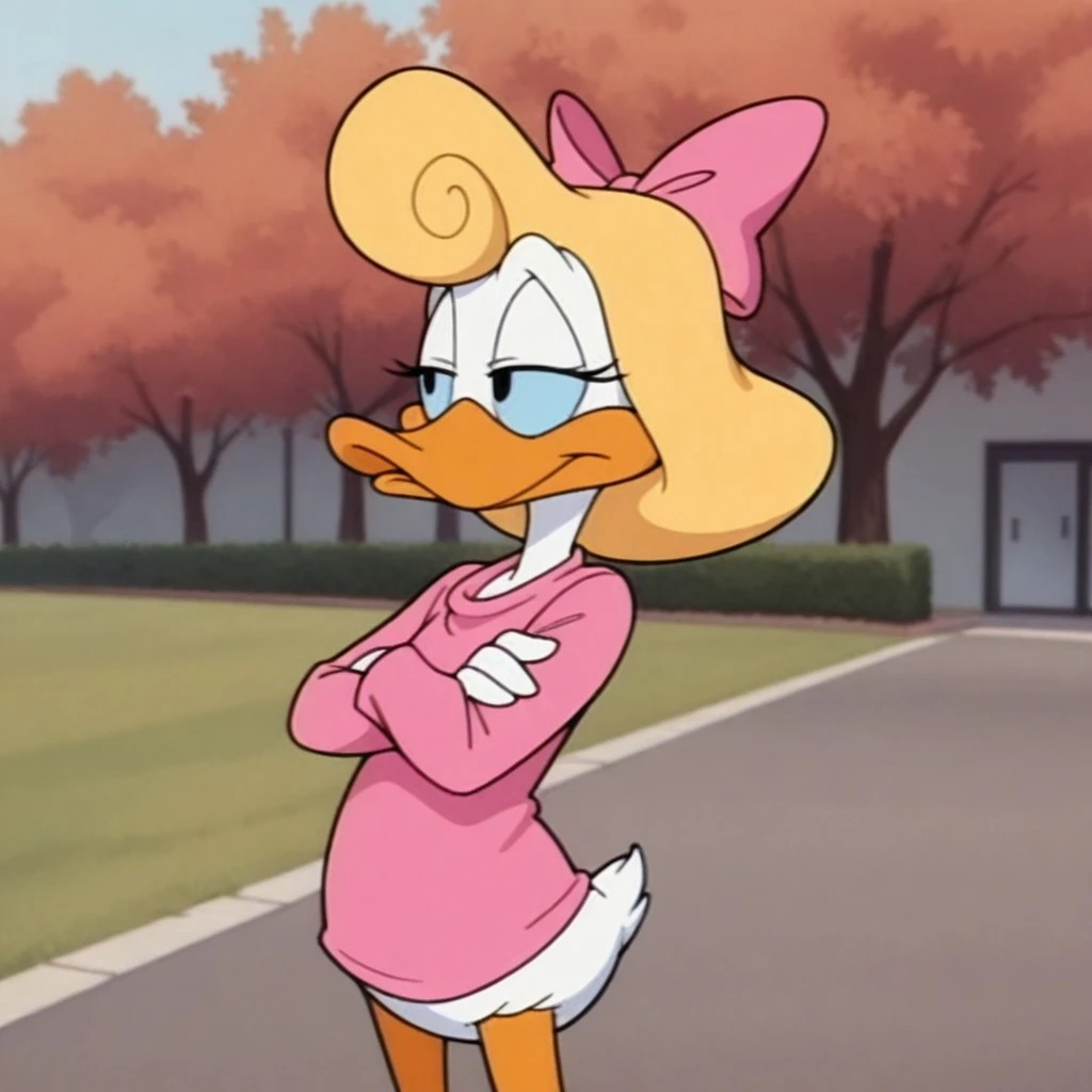 ShirleyttaIl, semi-anthro, female, duck, blonde hair, blue sclera, black eyes, white feathers,