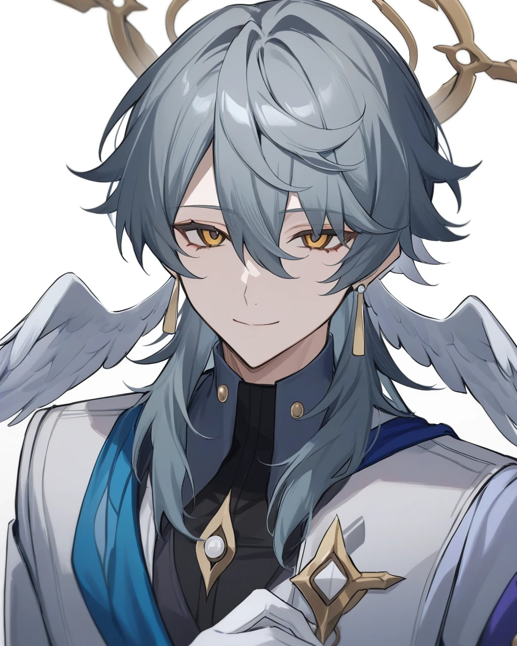 sunday_(honkai:_star_rail),head_wings,solo,long_sleeves,white_gloves,jacket,white_jacket,halo