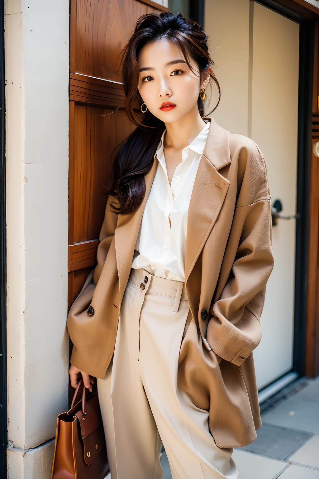 皮质夹克, 黑色紧身牛仔裤, 短靴:(Leather_jacket:1.4),(Black_skinny_jeans:1.3),(Ankle_boots:1.2),