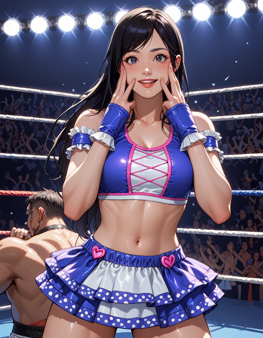 kokorowrestling, crop top, frilled skirt, navel