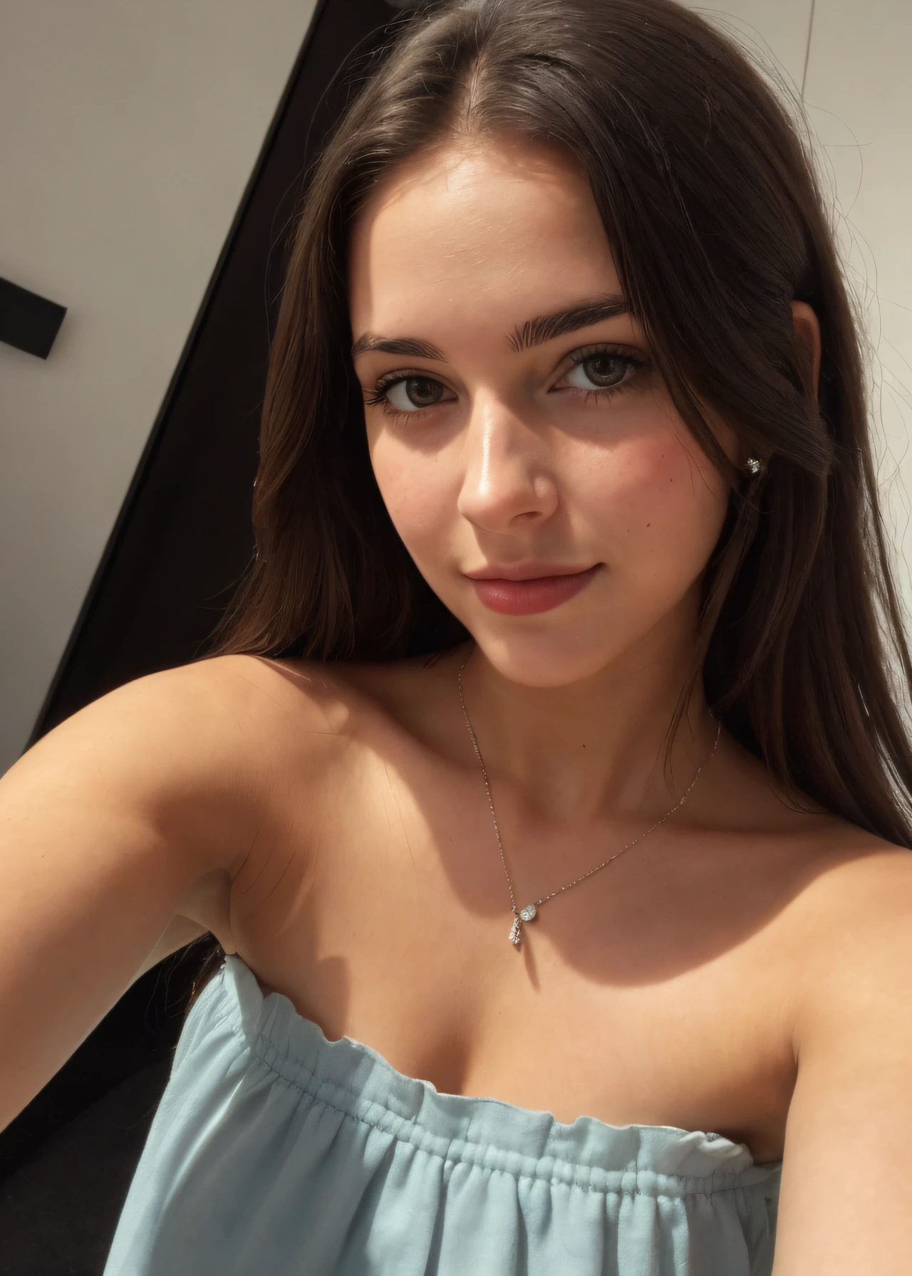 A close up of a woman in a blue dress posing for a picture