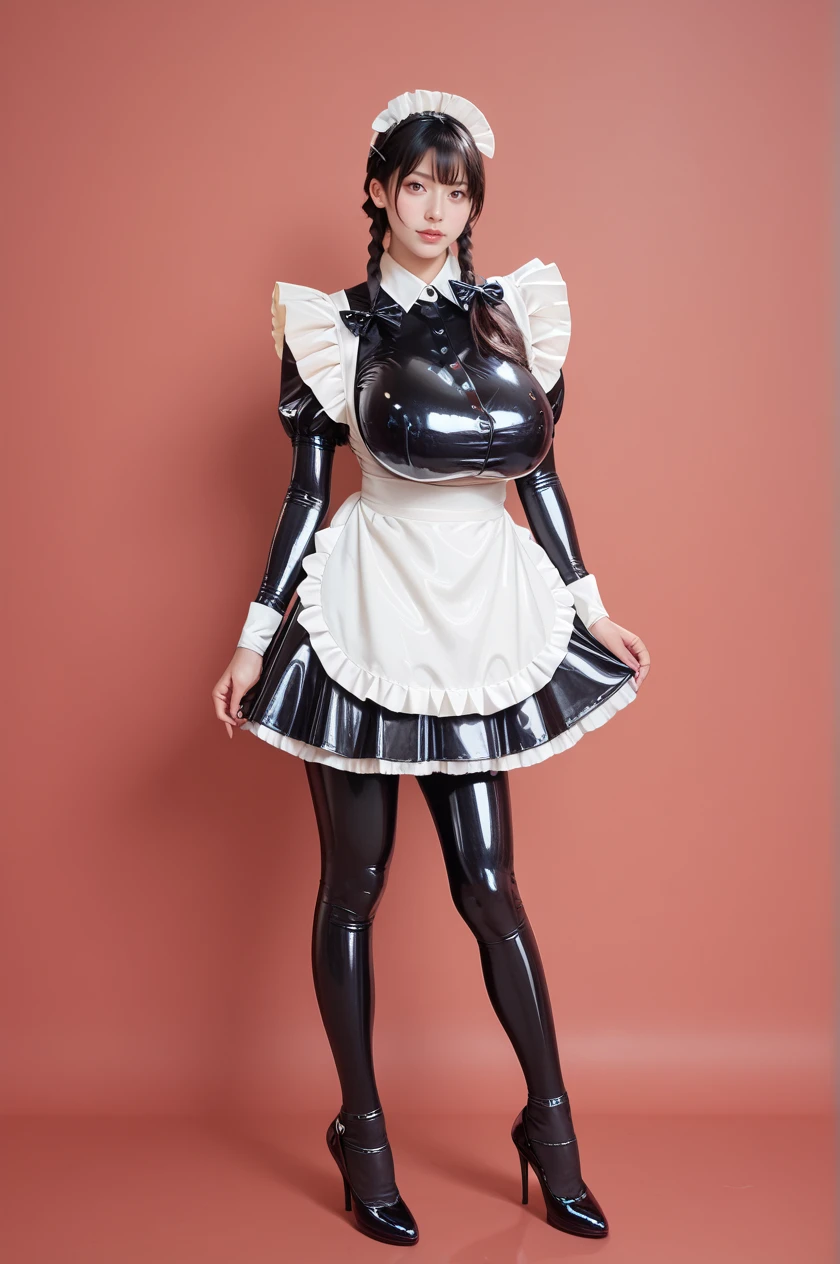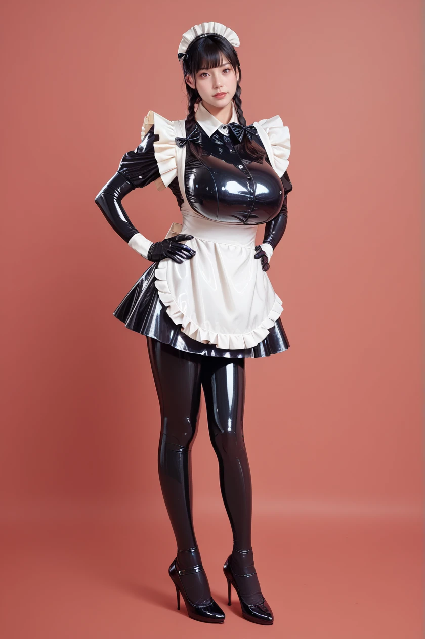 latex bodysuit,maid,maid apron,maid headdress,black dress,latex gloves
