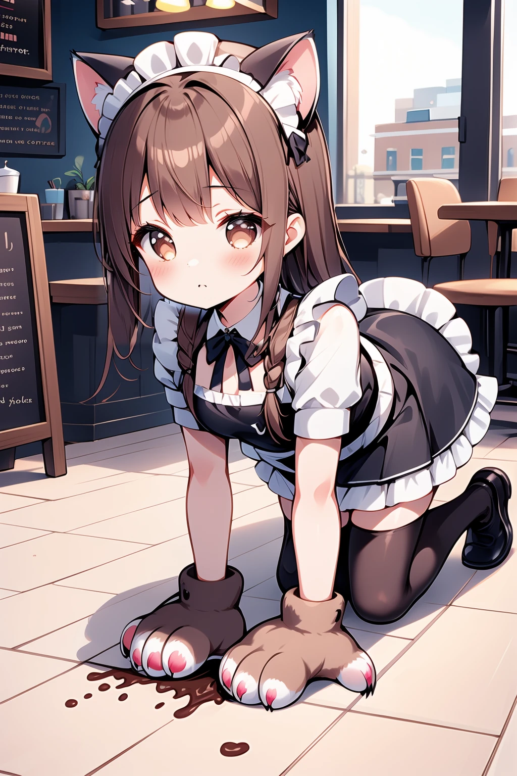 Prompt: outfit,kigurumi,cat,paws,bedroom,(woman),