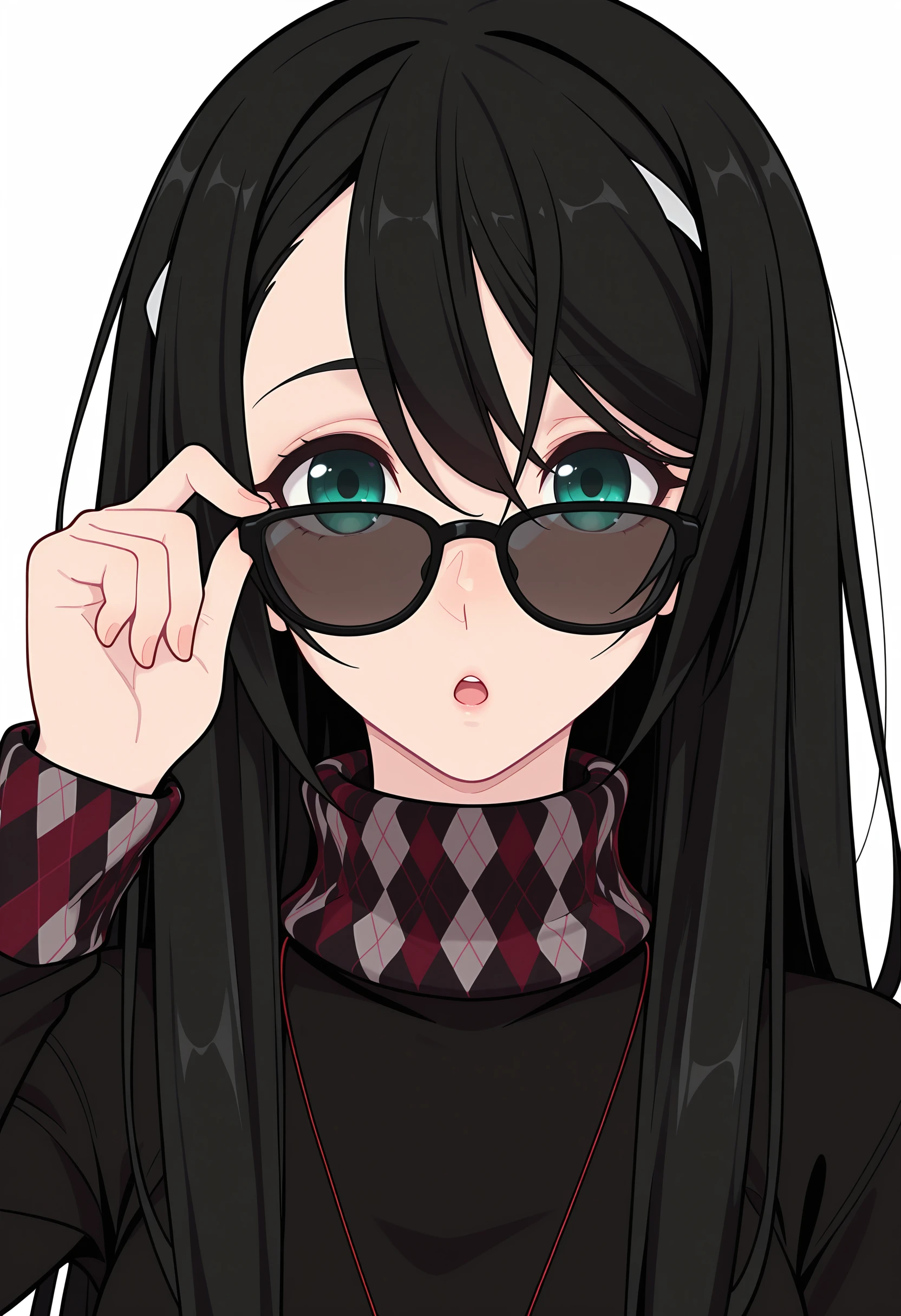 brown dress: vest, white turtleneck, necklace, white sleeves, plaid,