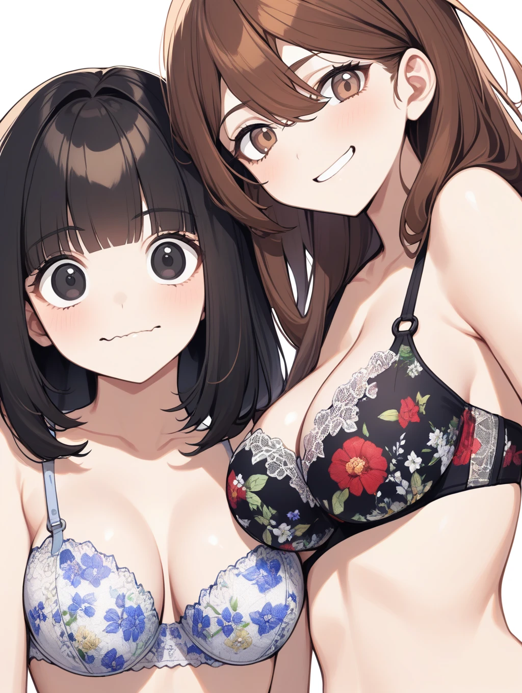 prompt: two-tone bra, multicolored bra, lace-trimmed bra, floral print bra,