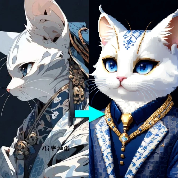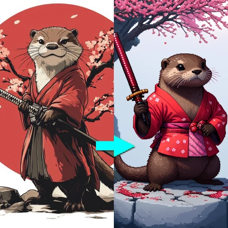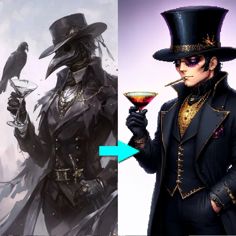 Tu imagen cargada será rediseñada y tendrá un efecto de arte de píxeles. Se recomienda un ancho de 832 y una altura de 1216, pero también podrías probar otra relación.