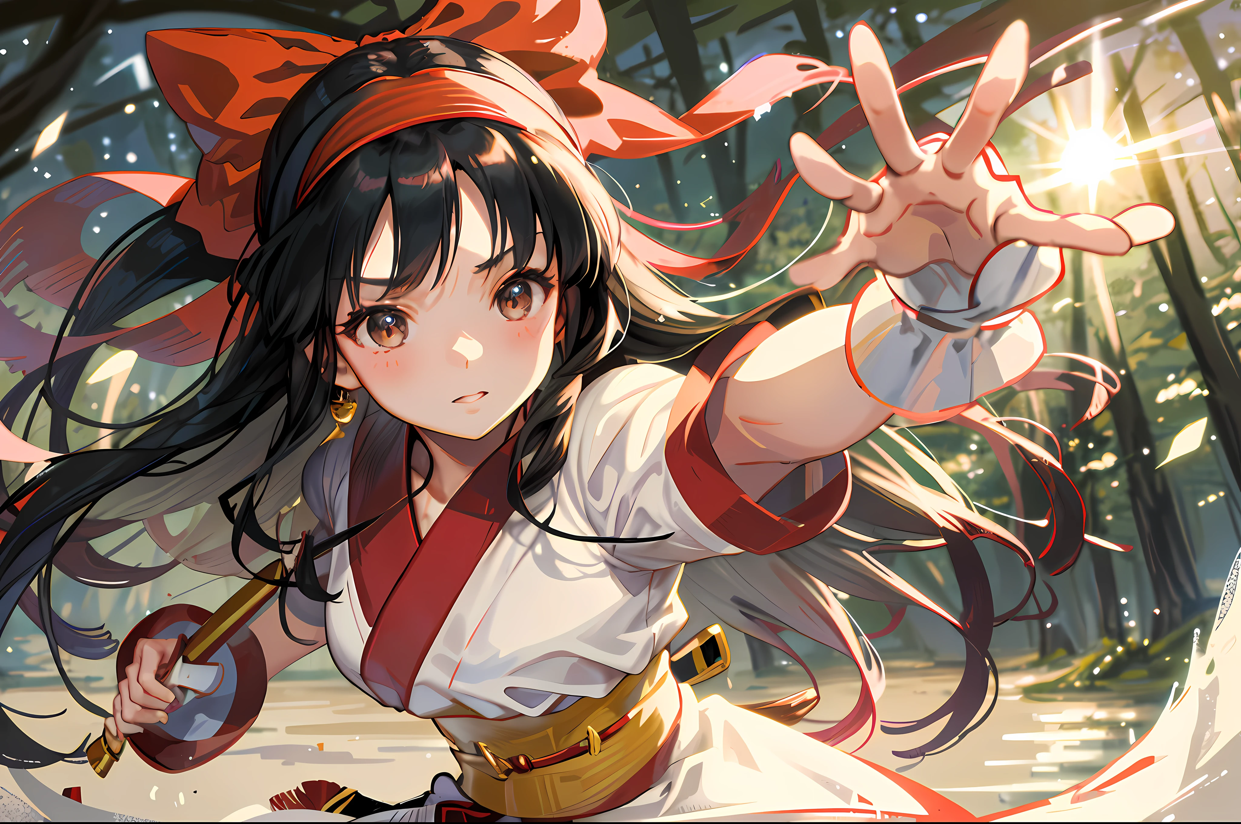 Anime girl with long hair and red scarf holding a sword
