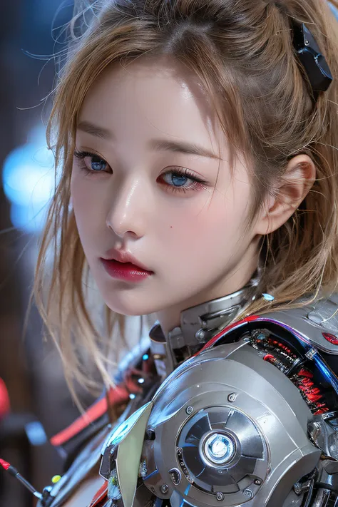 This character appears to be a futuristic android or cyborg with both human and robotic elements, suggesting a blend of artificial intelligence and organic traits.