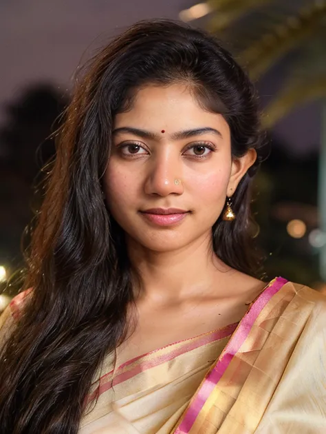 This portrays a traditional Indian woman with a gentle and graceful demeanor.