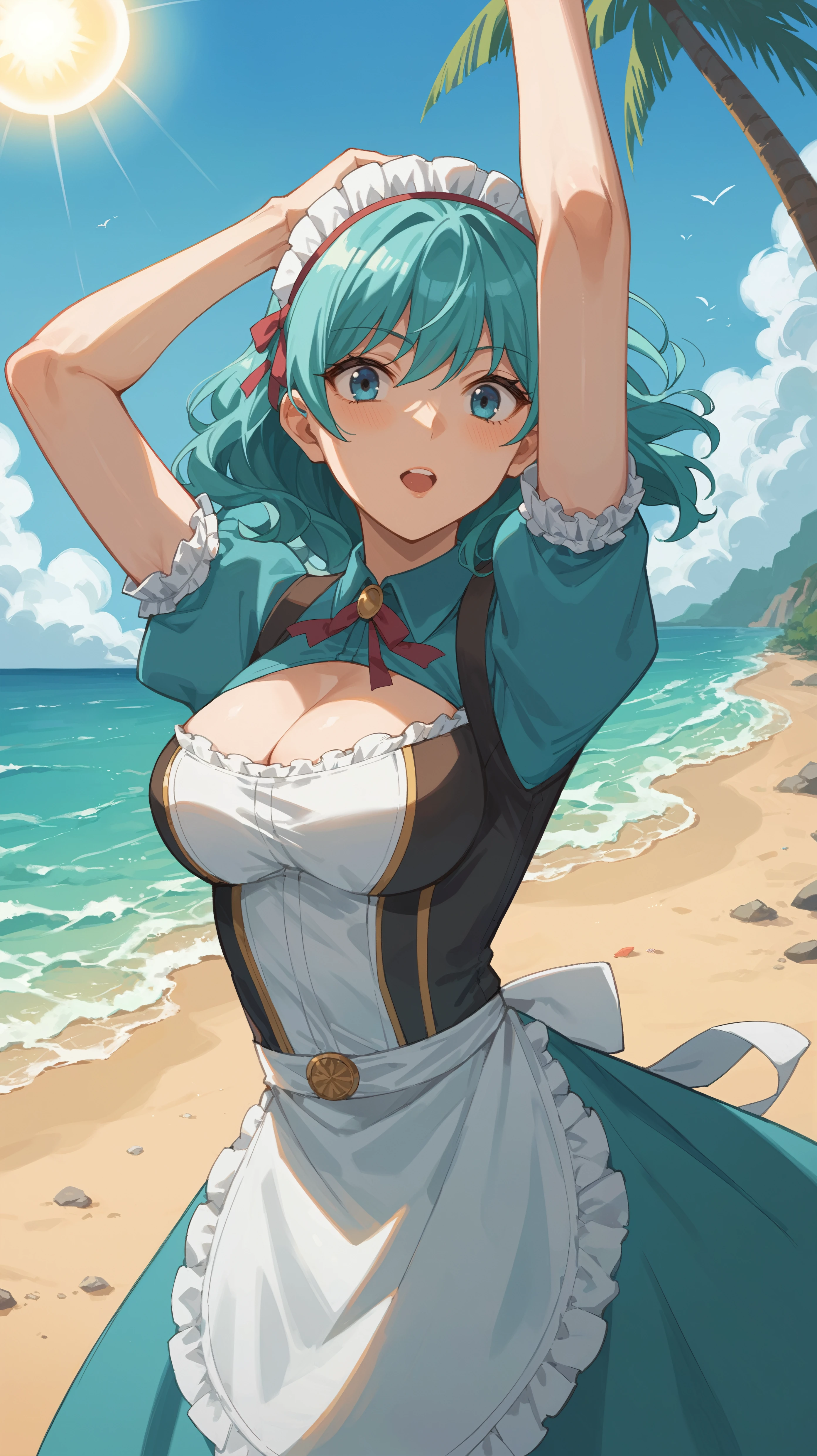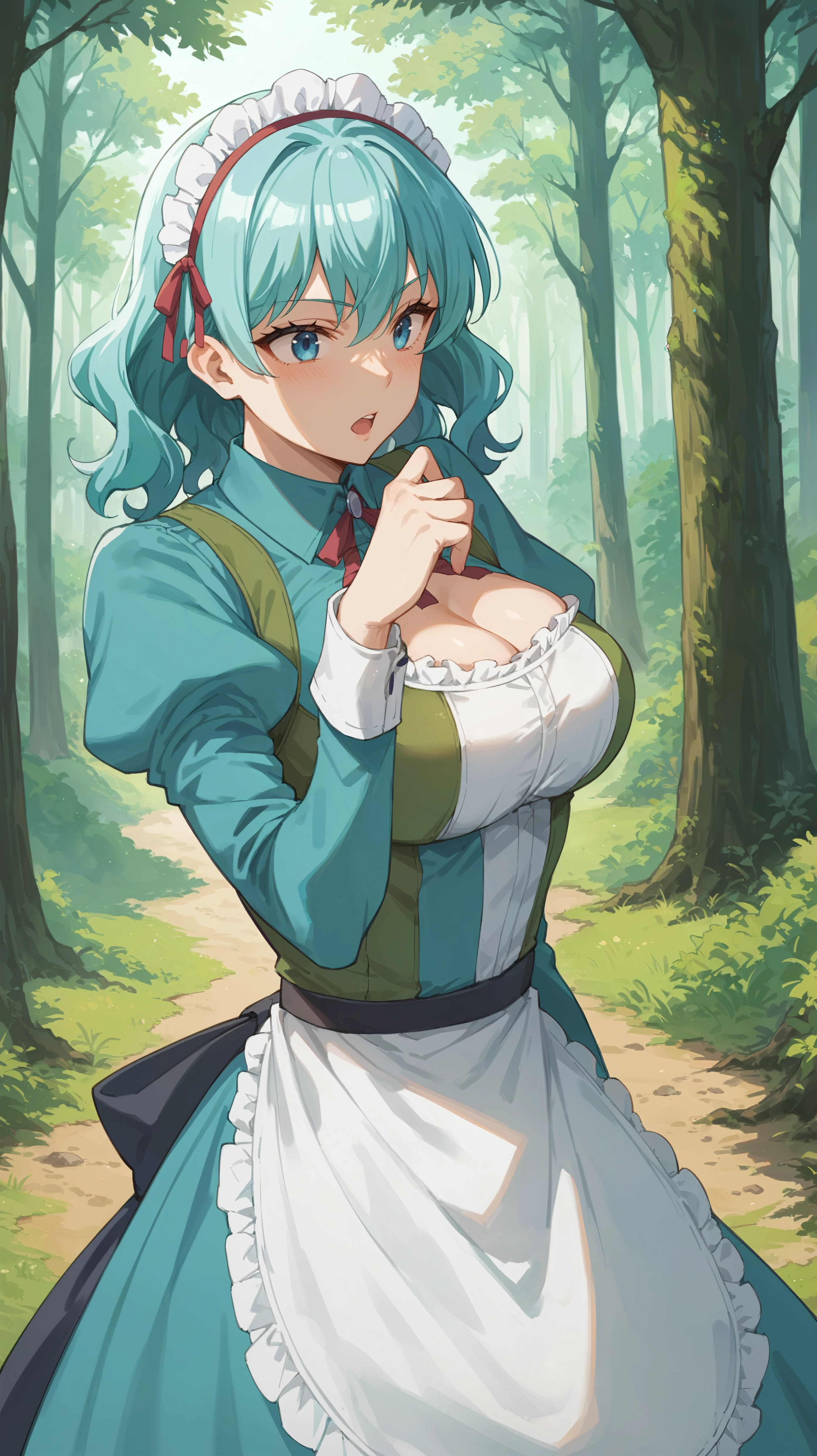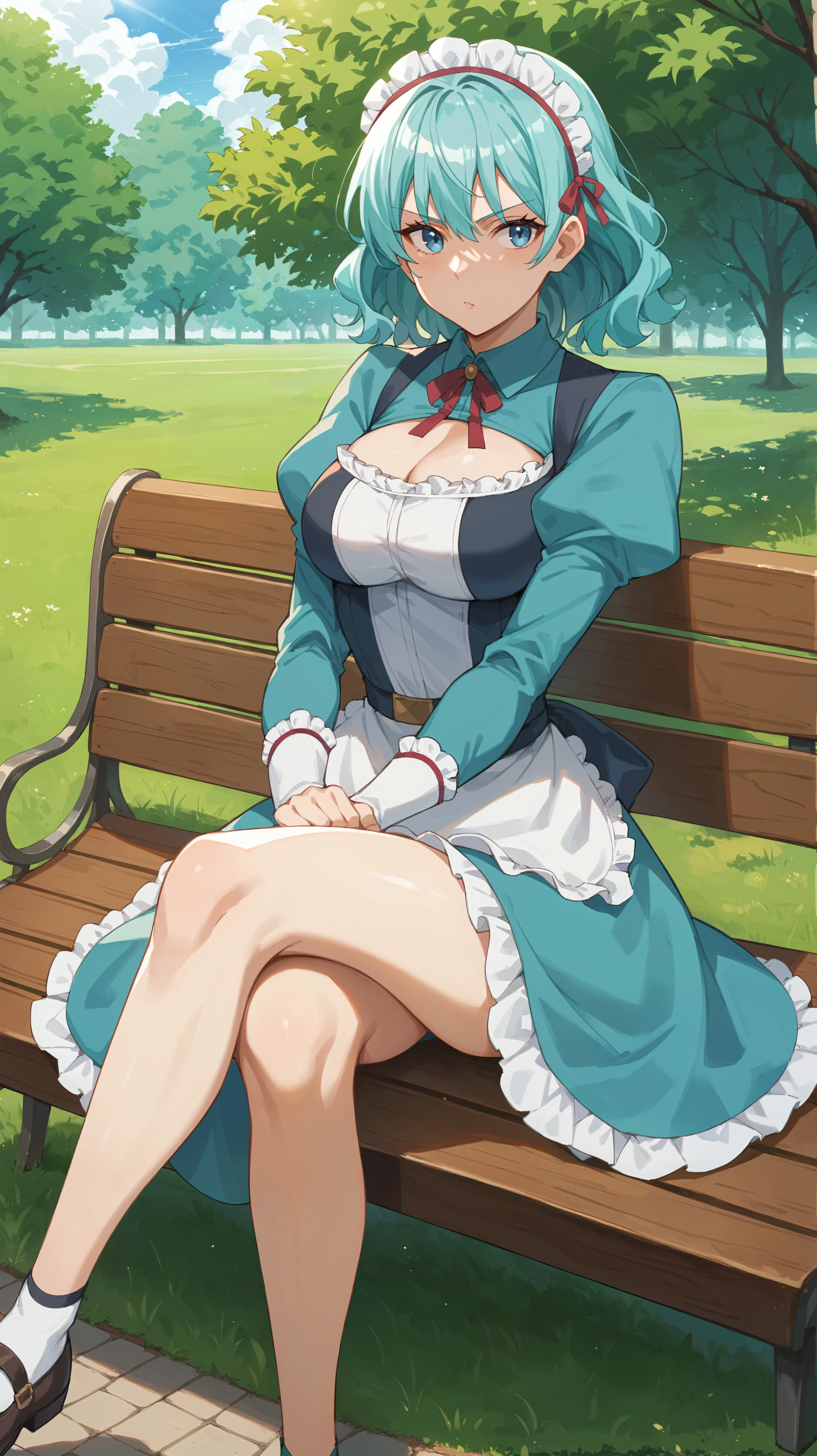 aqua hair, medium hair, blue eyes, aqua maid dress, maid headdress, frills, apron1. Modèle partagé uniquement à l'apprentissage et au partage. Droits d'auteur et interprétation finale réservés à l'auteur original.