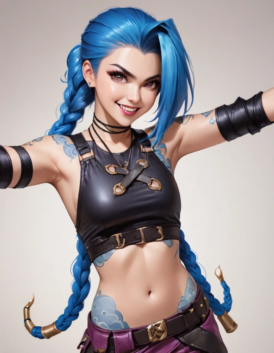 jinx,low twintails,blue hair,pink eyes,realistic,masterpiece