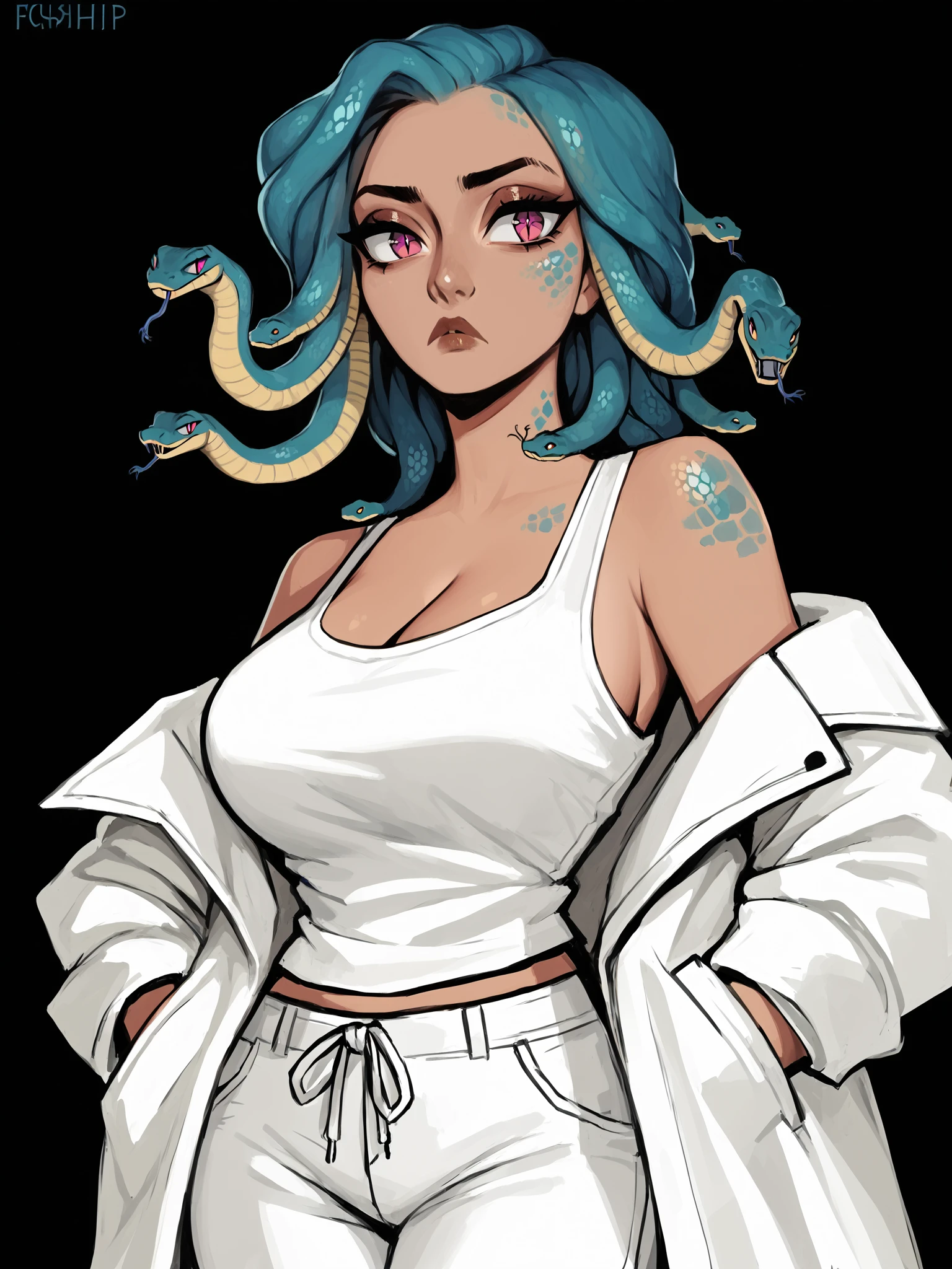 SDXL Concept LoRA for Pony V6/Pony merges, trained on snake hair pics.