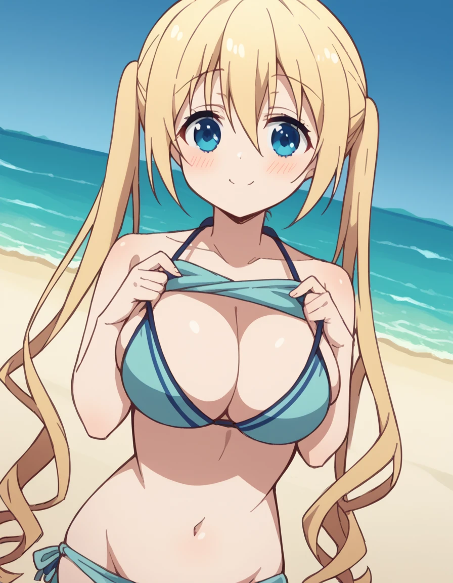 kaho hinata, blonde hair, blue eyes, hair between eyes, long hair, sidelocks, twintails, large breasts