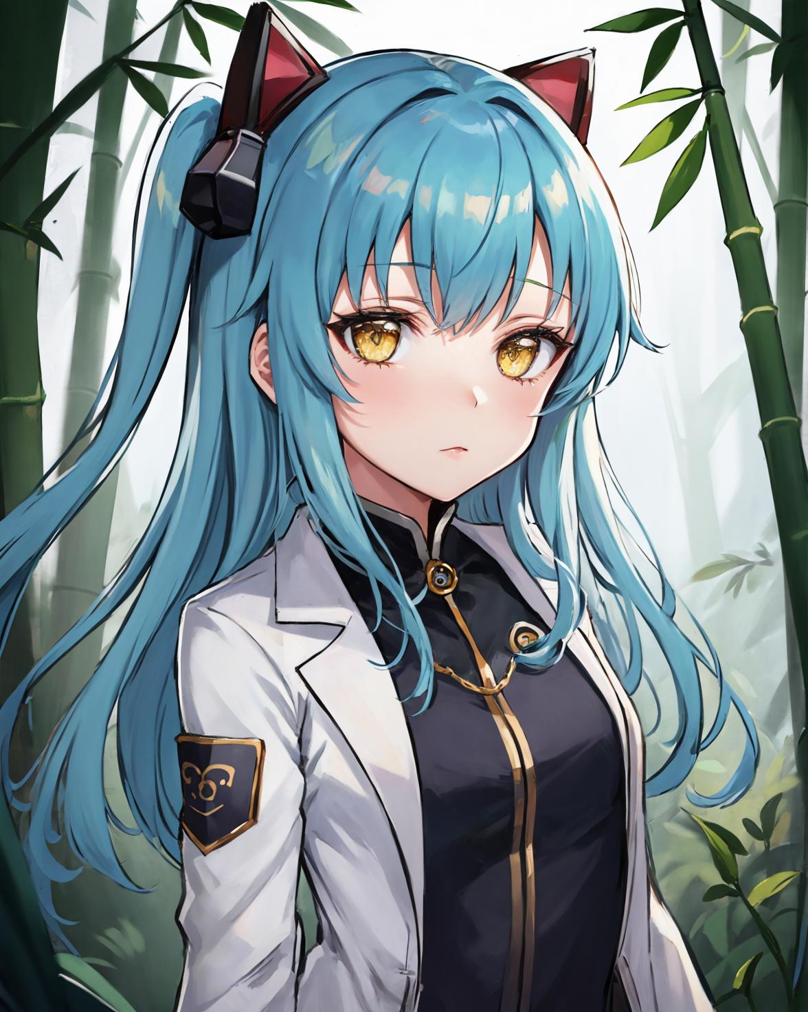 <lora:TioCS3:0.9>, Tio Plato, yellow eyes, aqua hair, long hair, two side up, small ???????,