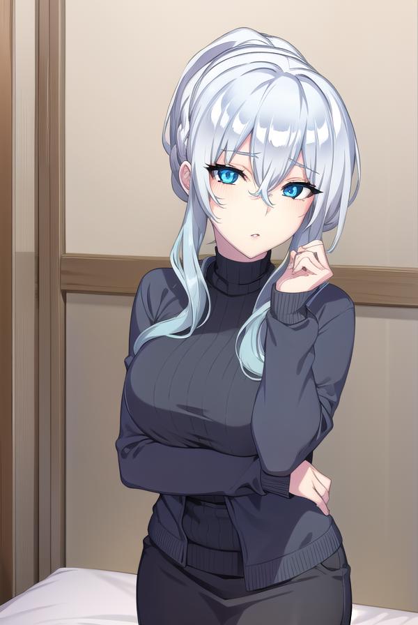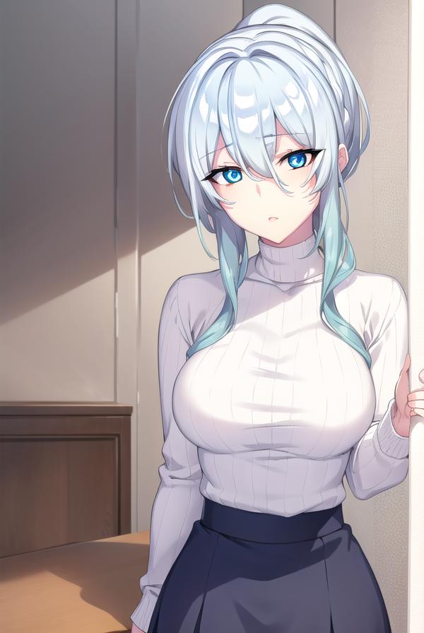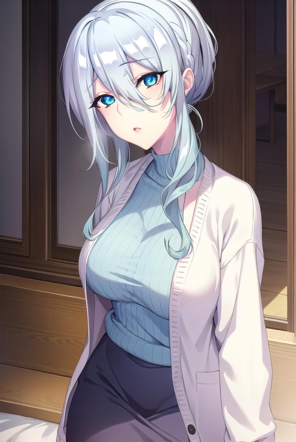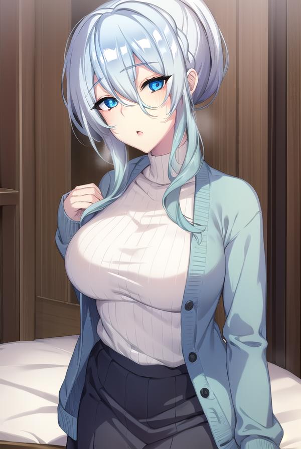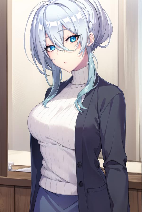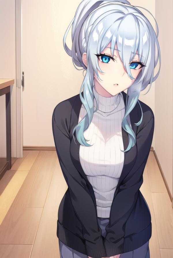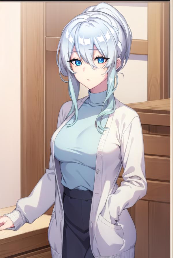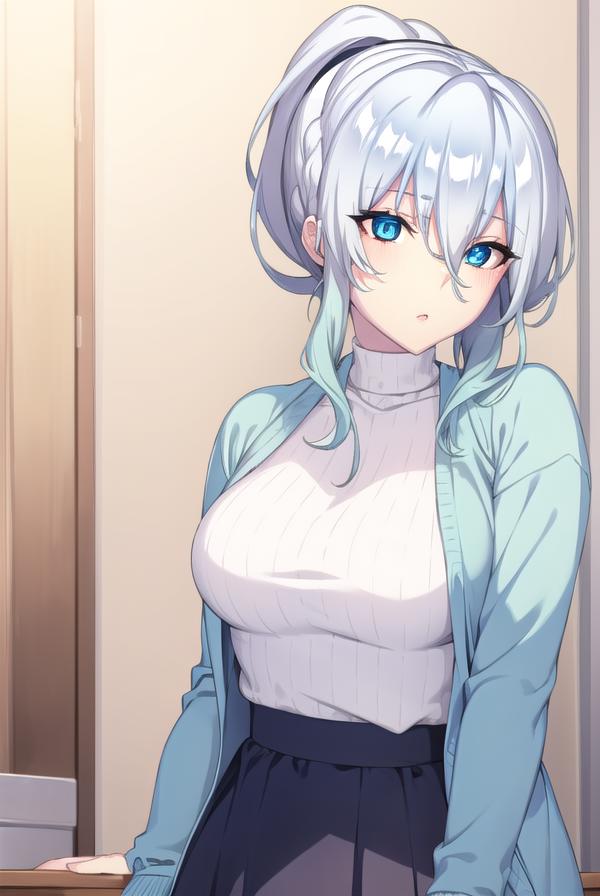 skirt, long sleeves, black skirt, sweater, turtleneck, ribbed sweater, white sweater, cardigan, blue cardigan, open cardigan,