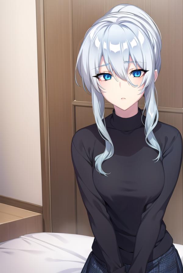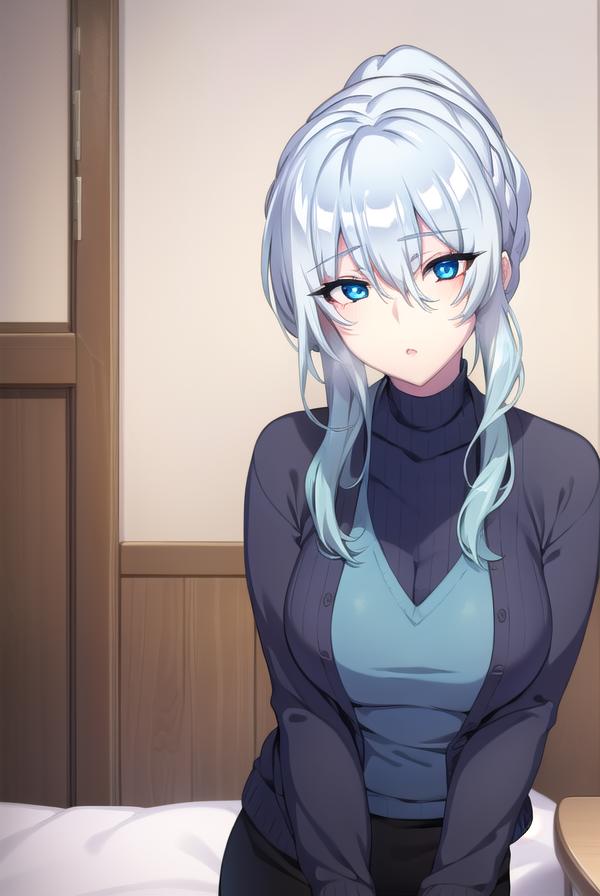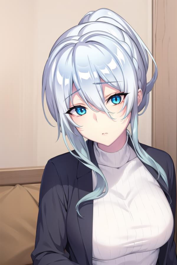 yuki ona yukino, long hair, bangs, blue eyes, hair between eyes, blue hair, ponytail,