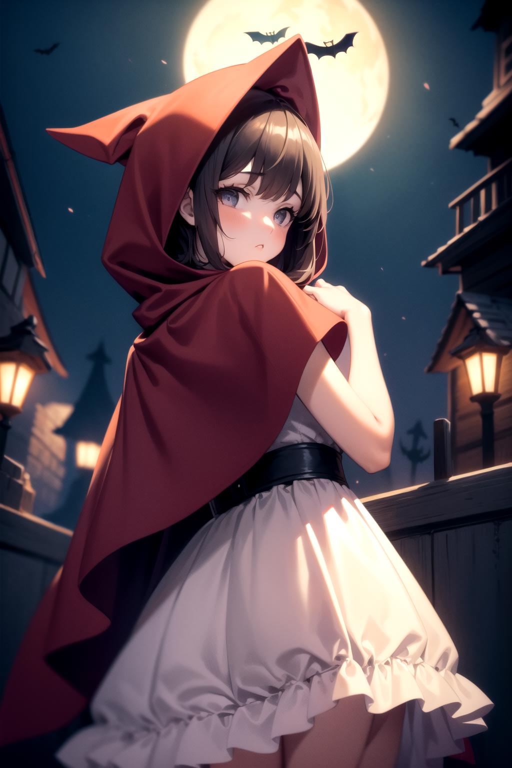 Useful tags for the Halloween costume look: dress, frilled dress, corset, frills, frilled skirt, basket, jack-o'-lantern, night, moon, halloween, halloween bucket, etc.