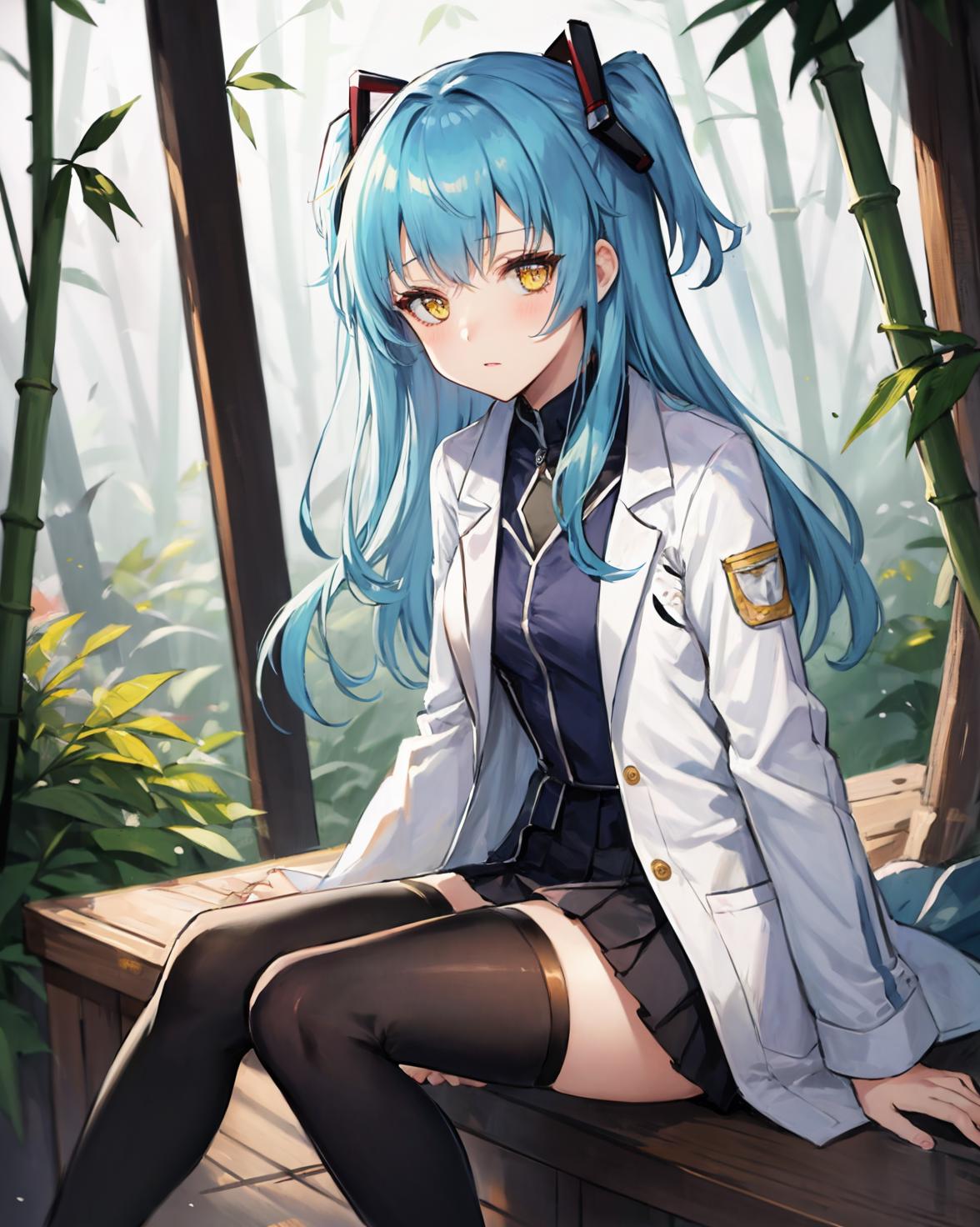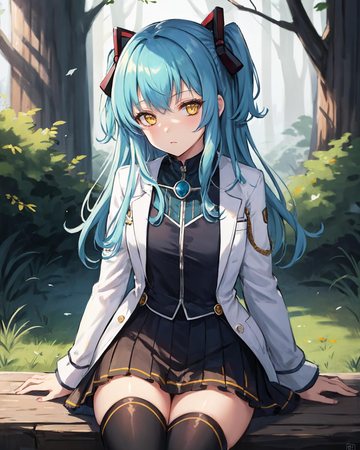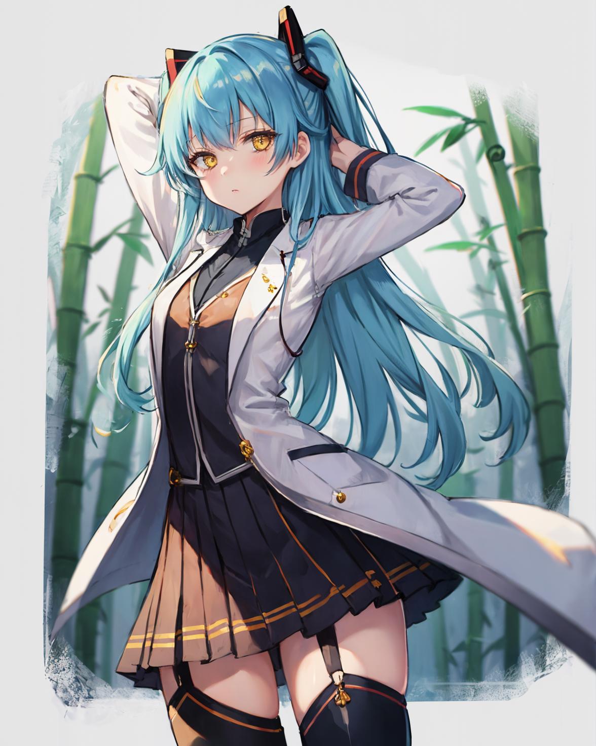 <lora:TioCS3:0.9>, Tio Plato, yellow eyes, aqua hair, long hair, two side up, small ???????,