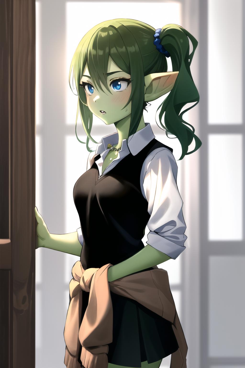 Trigger Words: goblin girl, female goblin, goblin, green skin, pointy ears,