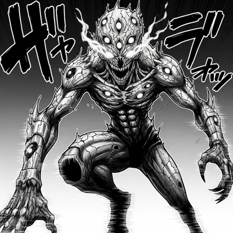 Criaturas mutadas surgidas del colapso del mundo, resultado de la descomposición biológica, la radiación y la corrupción digital provocada por las IAs rebeldes. Estas bestias son humanoides, pero deformes y completamente inestables, con piel agrietada como piedra, múltiples ojos brillantes que se distribuyen de forma antinatural sobre el cráneo y cuerpos extremadamente musculosos pero desgastados.