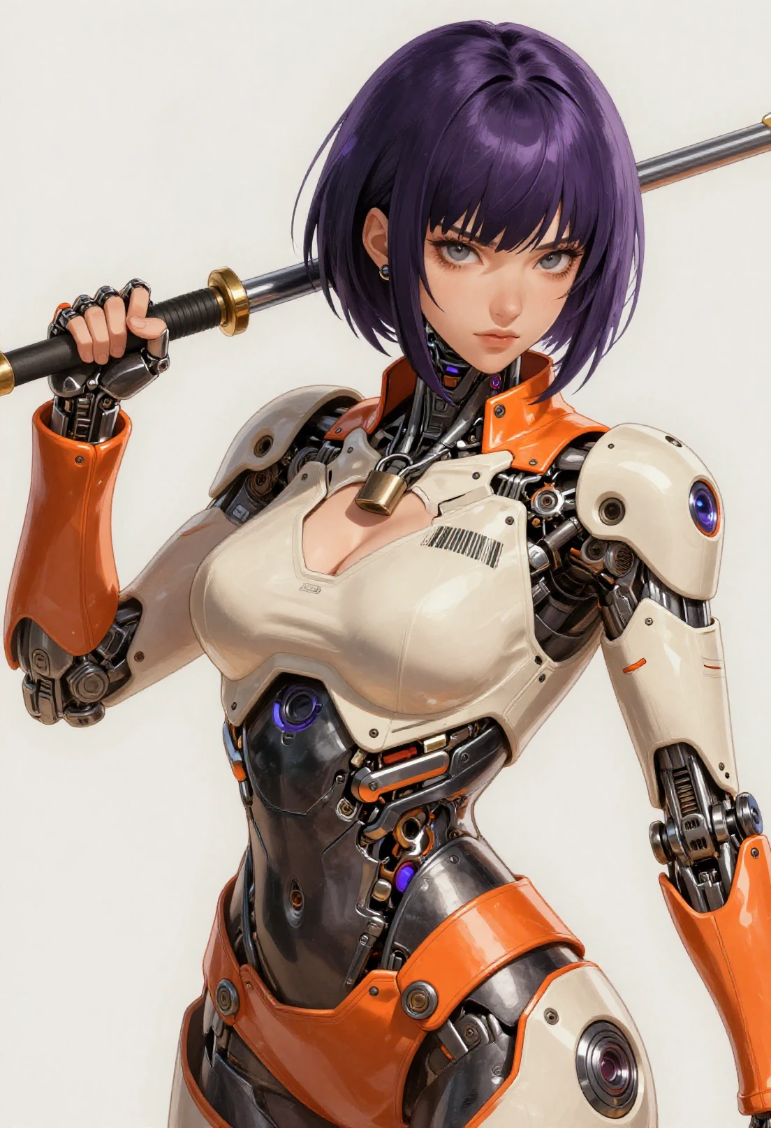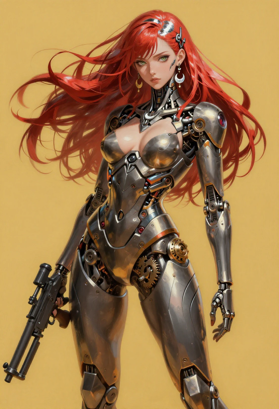 mechabare, mechanical parts, solo, science fiction,sf, 1girl, cyborg, { curvy, ???? | fighting stance, } { holding weapon, holding {sword,| polearm,| knife,| rifle,| axe,| pistol} {cyborg,mechanical arms, mechanical eyes, {short hair,| long hair, | braid, | bob cut,| very long hair, } , face focus | exoskeleton, ???????, mechanical arms, mechanical legs, face_focus | mecha robot, holding weapon, | non-humanoid robot,} | { no humans, vehicle focus,{ military vehicle, | sports car | car | gun | plan |ship } }, }{1-3$$ Oil paint|Watercolor|Acrylic|Gouache|Tempera|Pastel|Charcoal|Ink|Colored pencil|Graphite| anime screenshot, | western comics \(style\), | manga style }, {multiple-tonbackground |simple background | gradient background | indoors, | outdoors, }, ,dynamic visul, limited palette theme,matel color trim,{ gradient colors, | limited palette, | vivid colors, | pastel colors, | two-tone colored } , { upper body, | full body, | Wide shot|Long shot|Full body|Three-quarter shot|Mid shot|Upper body|Portrait|Close-up|Extreme close-up}, {1-2$$ barcode tattoo, | national mark| floral print, | barcode tattoo,|gears| energy pipe,| glowing leds| mechanical wings, | high heels,| speed lines,}