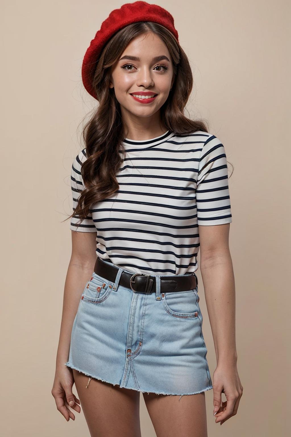 frenchgirlstyle, blue striped, red cap,