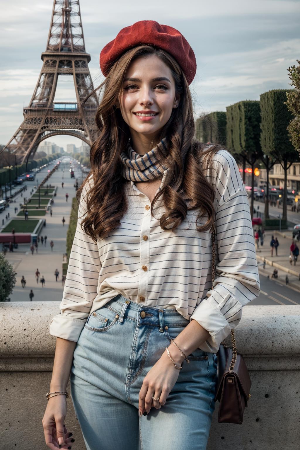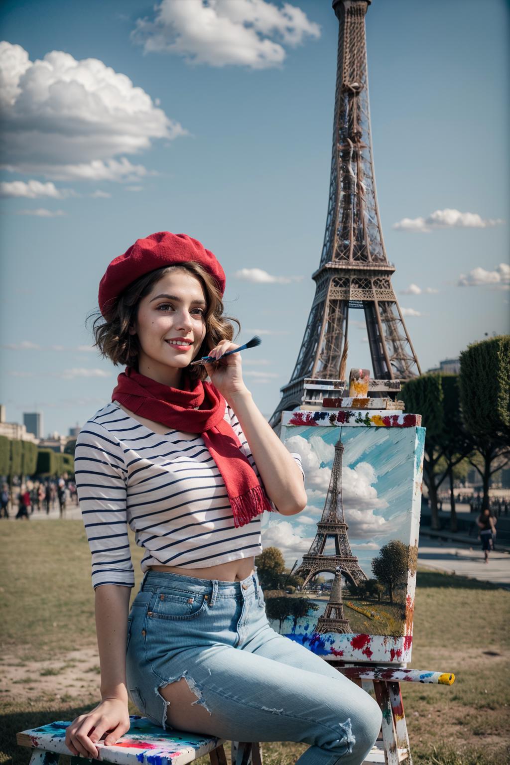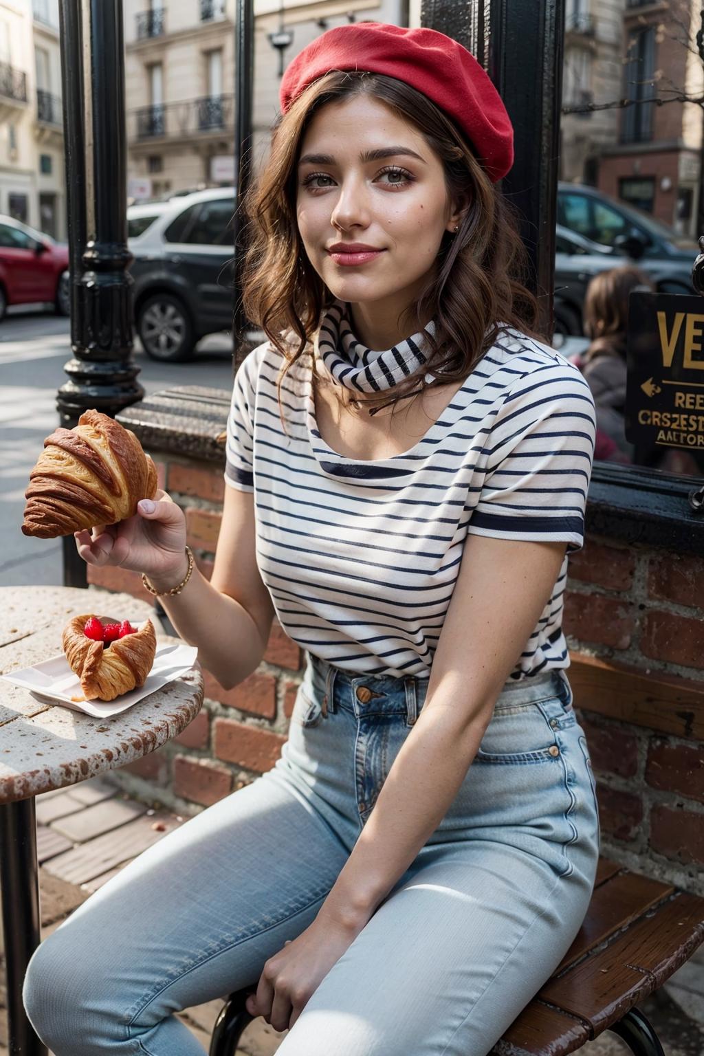 This is a model that you can use to recreate the ironic cliche French girl clothes (beret, striped clothes). Try to play with the intensity from 0.5 to 1 to achieve the best result depending on the Checkpoint you are using.