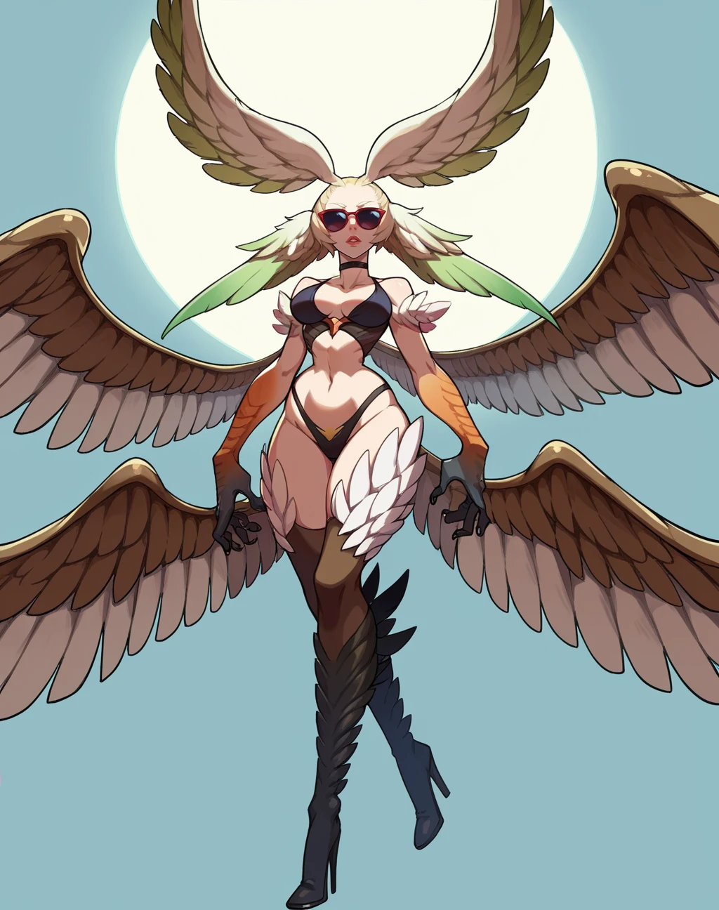 edgGaruda,feathered wings,head wings, navel, multiple wings,
