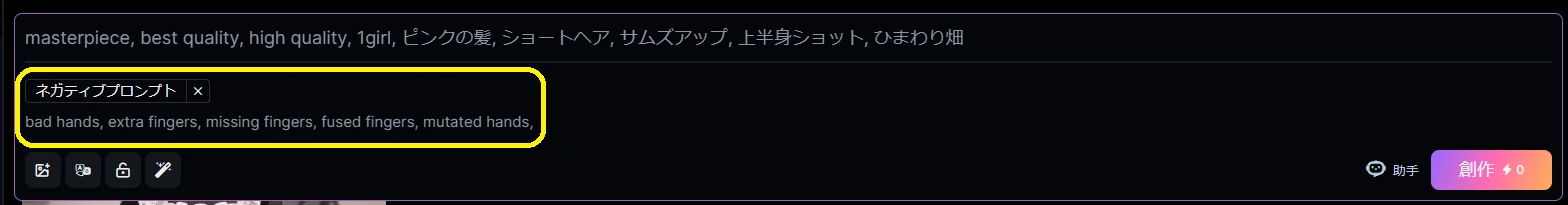 ネガティブプロンプト入力できるものはそちらに書いた方が良いです。
