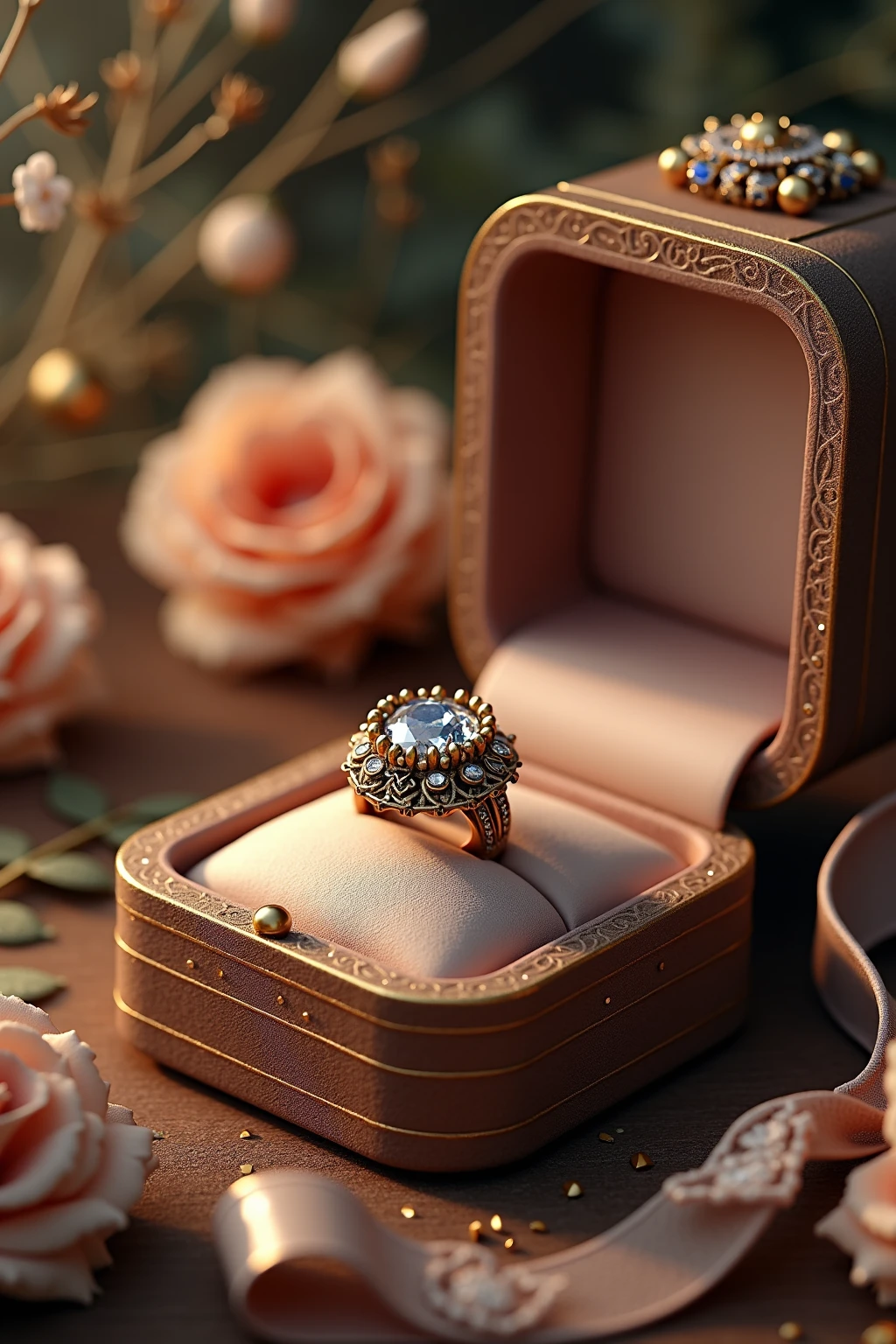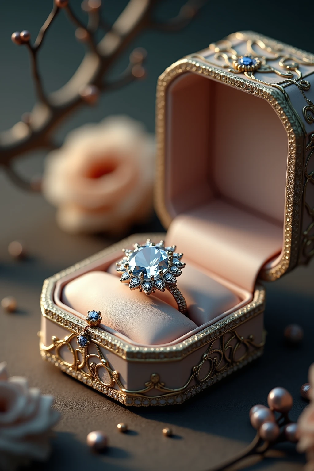 masterpieceあり:masterpiece, best quality, high definition, 8k, 高級な箱に入った指輪, 美しい装飾