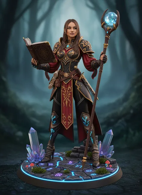 Pose heroik dengan dasar rune yang bercahaya, Sempurna untuk Kolektor.