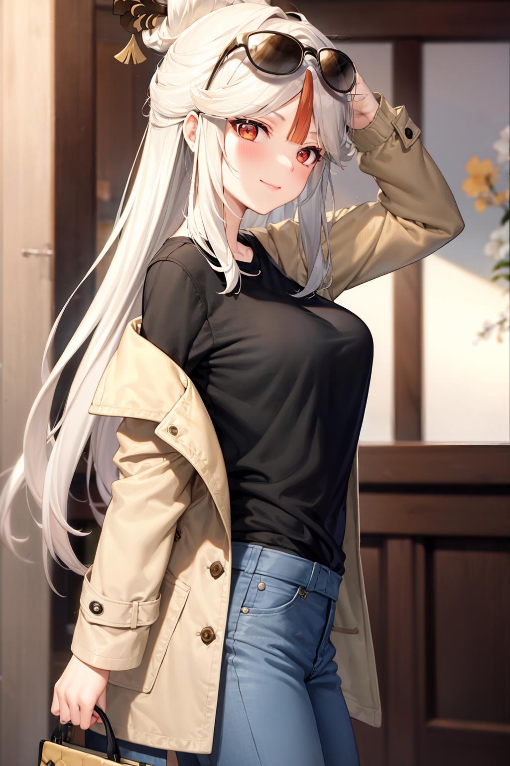 1girl,long hair,white hair,hair stick,hair ornament,red eyes,jewelry, vision \(genshin impact\), chinese dress, gloves, claw ring,tassel,bare shoulders, fur collar,fur trim,detached sleeves, leg tattoo,tattoo, pelvic curtain,
