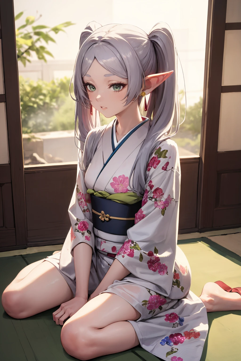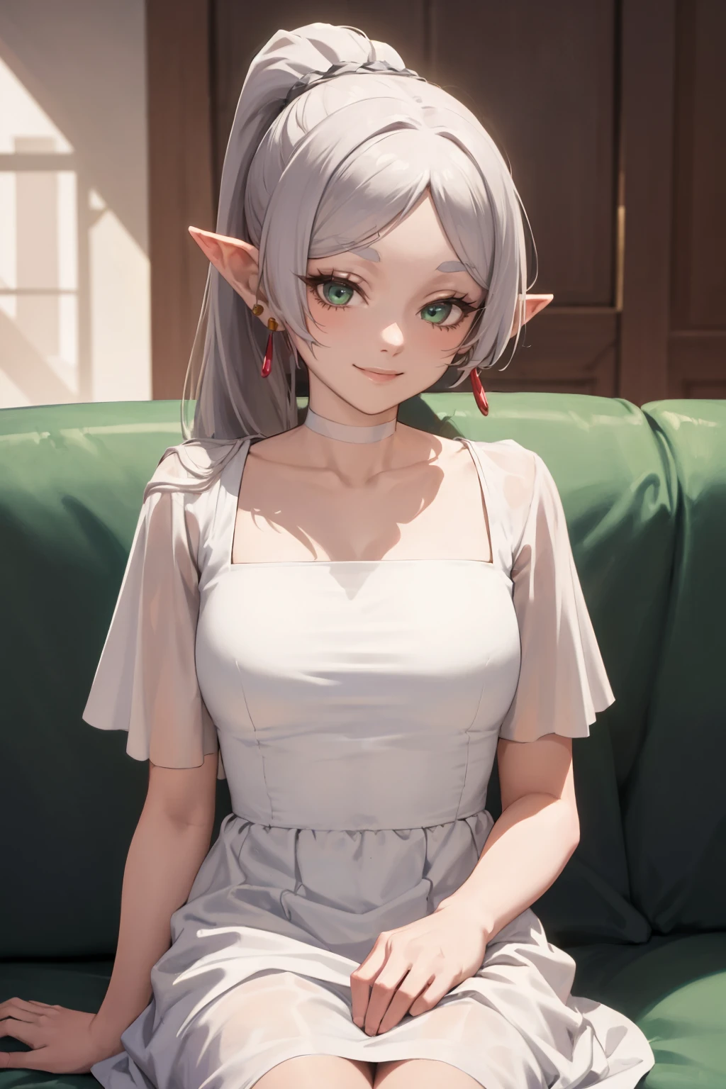 FrierenDress, long hair, ponytail, earrings, white choker, white dress, short sleevesLet me know if you have any issues.