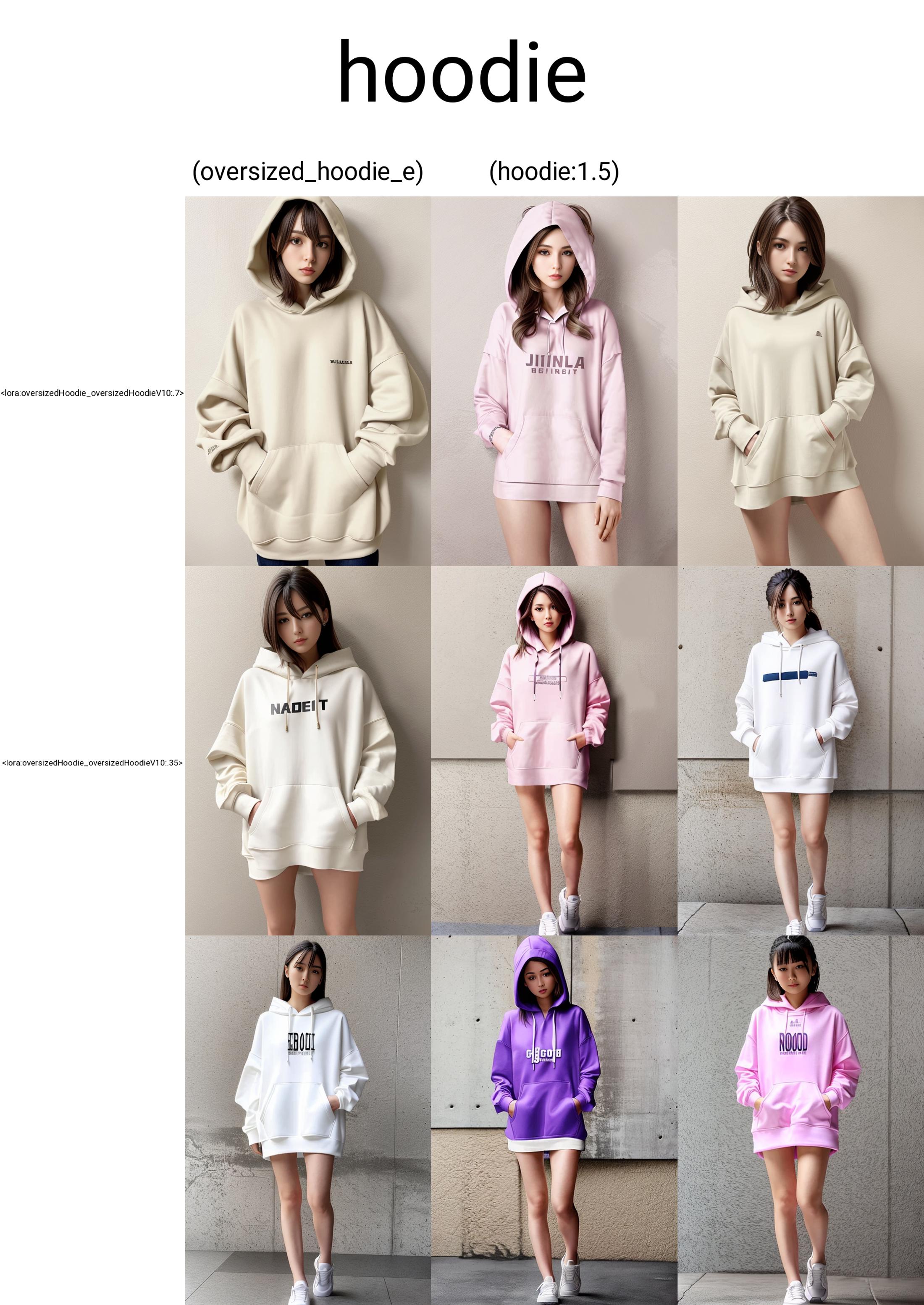 Hi, this is a clothing LoRA using online shopping picture, try to keep the sloper/pattern of oversized hoodie