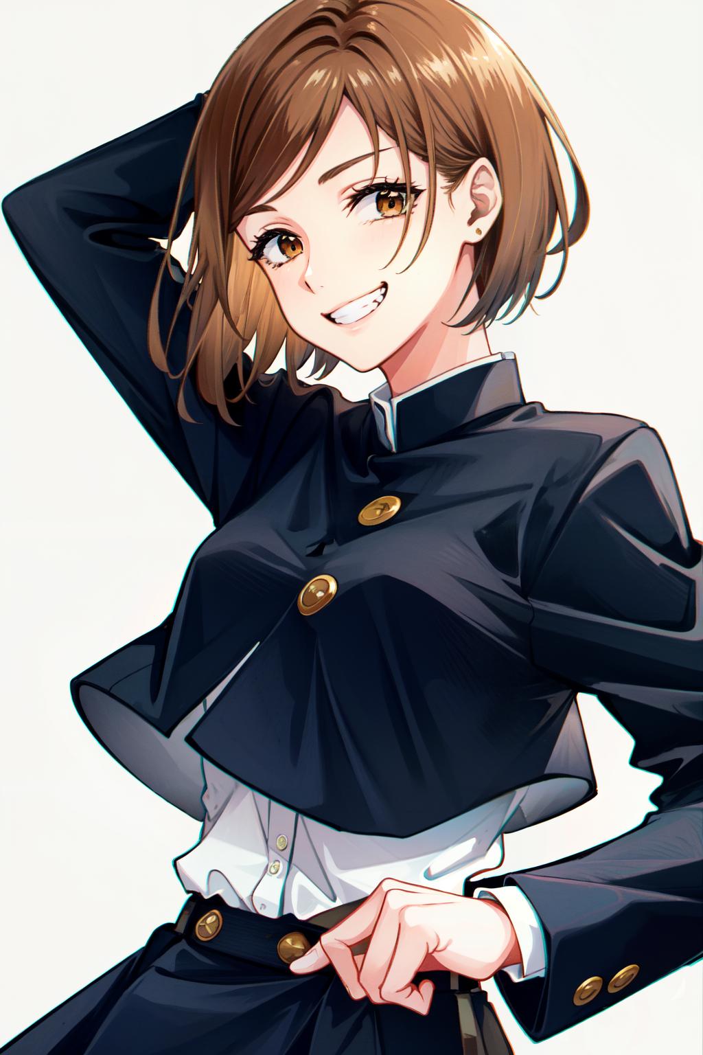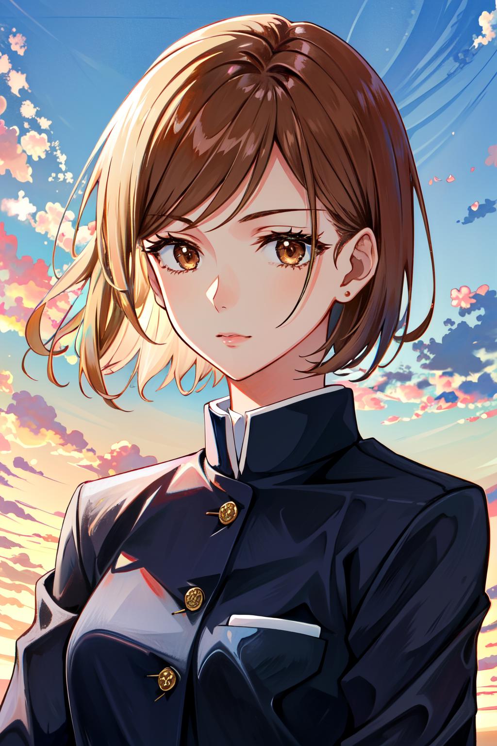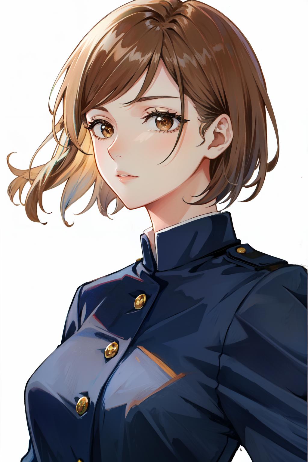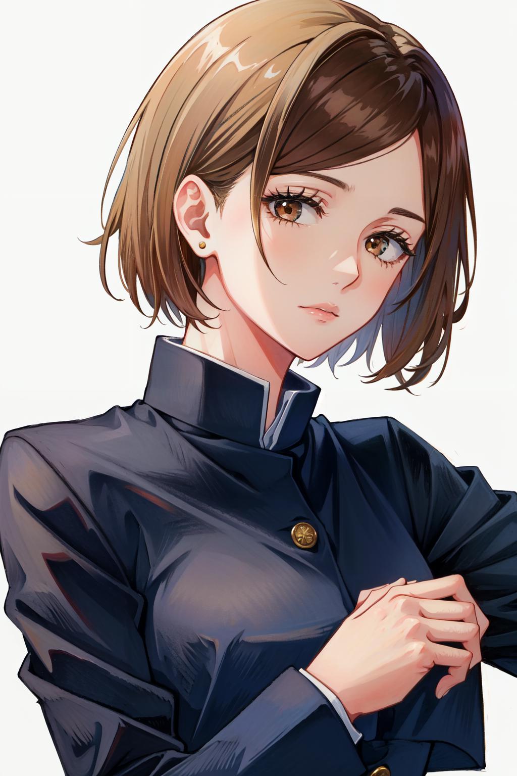 Tag suggestions: brown hair,brown eyes, short hair,hair behind ear , white shirt, jacket