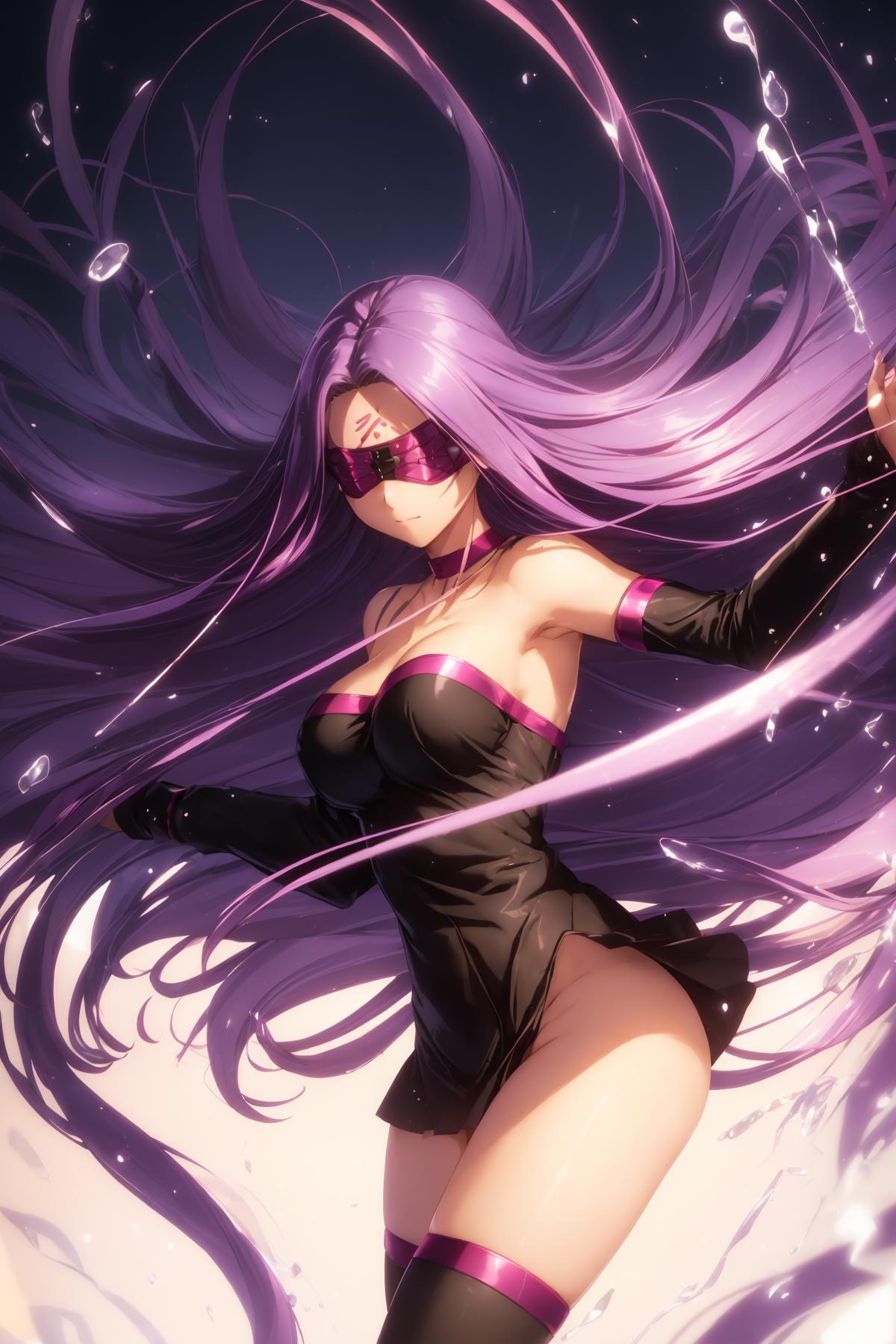 absurdly long hair, purple hair, floating hair