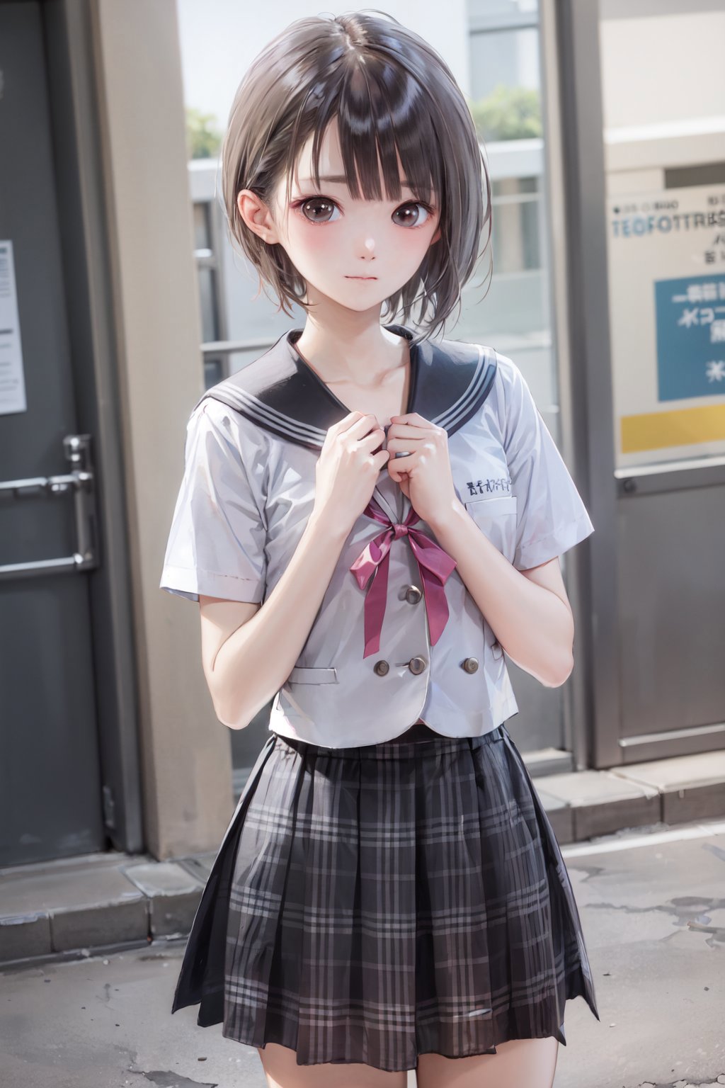 Default Outfit: school uniform, serafuku, plaid skirt