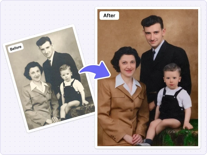 Ubah potret keluarga yang pudar menjadi harta berharga nan penuh warna yang menjembatani lintas generasi. Pulihkan foto pernikahan kakek-nenek, kenangan masa kecil, dan gambar leluhur untuk menjaga warisan visual keluarga Anda bagi generasi mendatang.