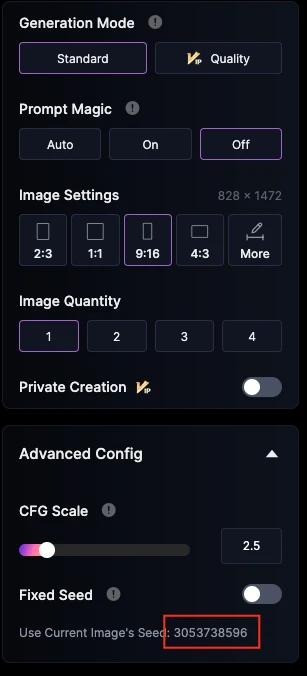 c. For flux models and seaart film, use magic prompt off, so that the lighting can follow our prompt.