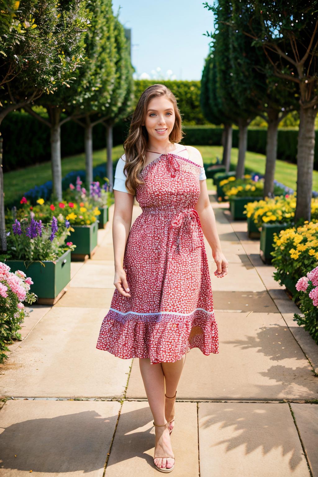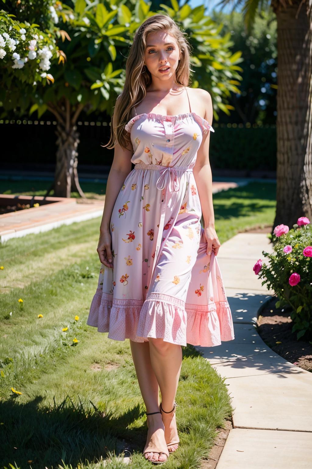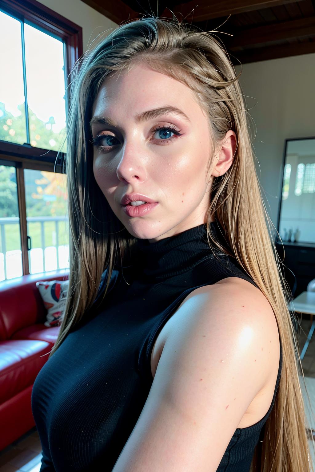 The pictures are a workaround for Civitai TOS. The pictures you get from the LoRa are usually much closer to what she usually wears.
