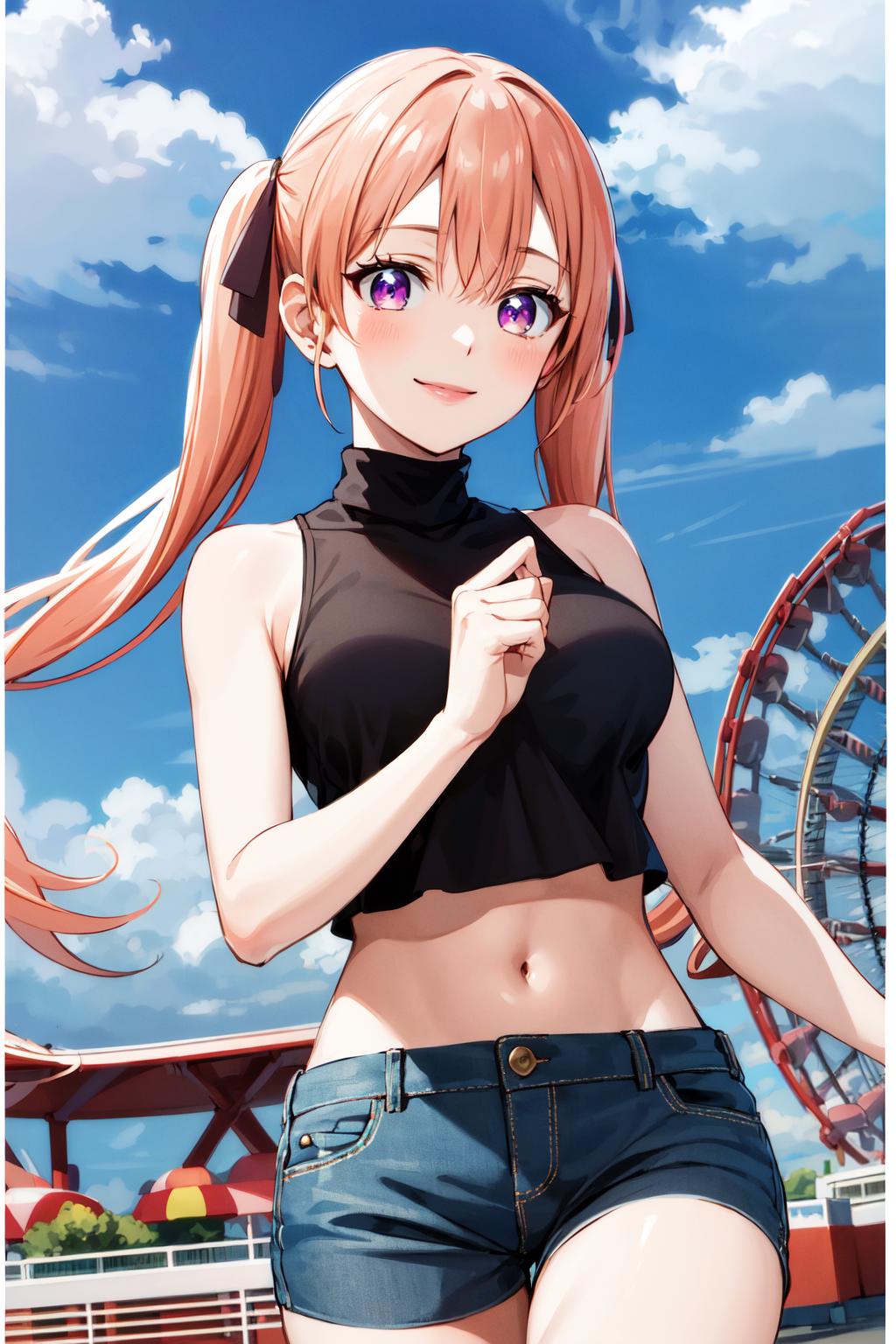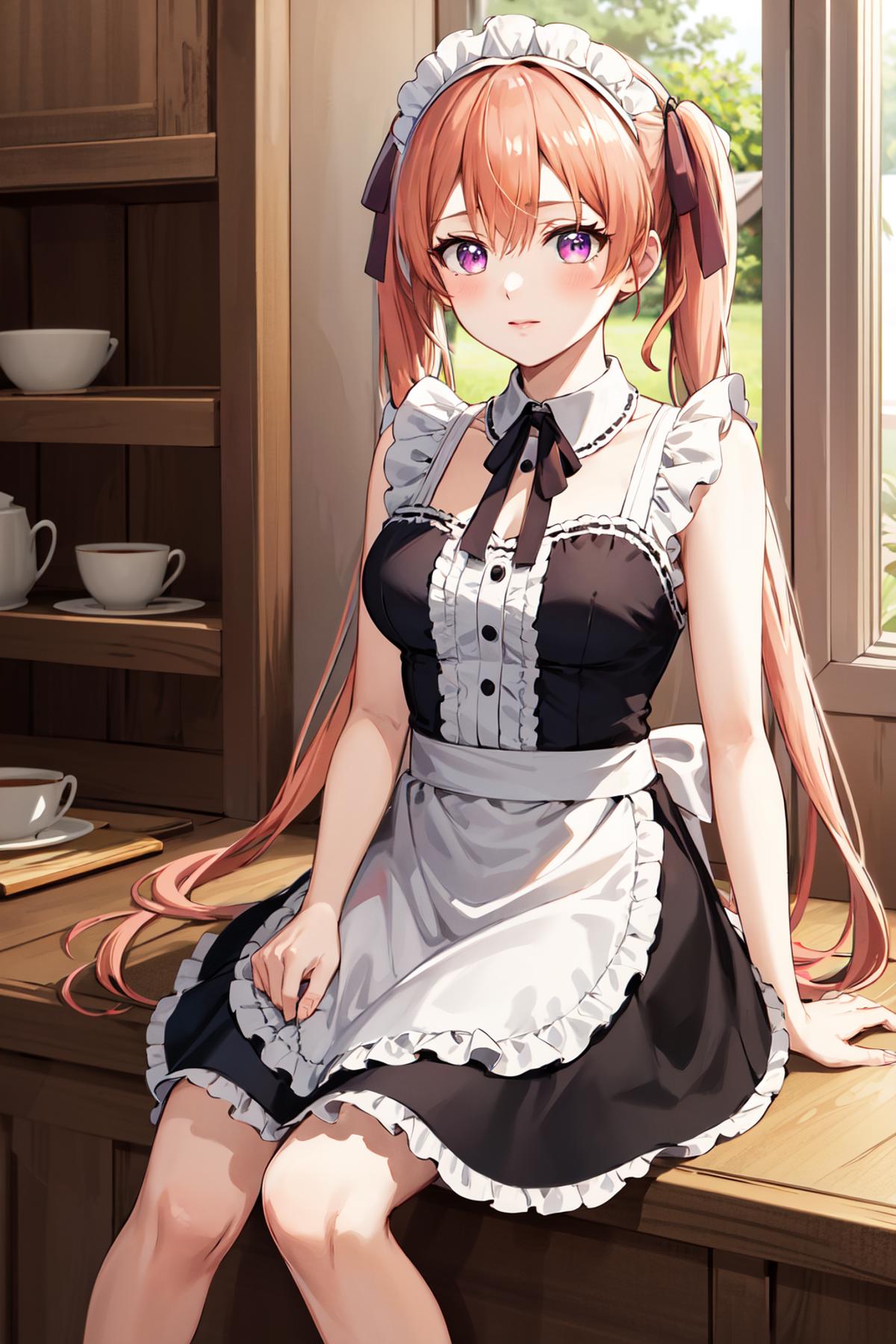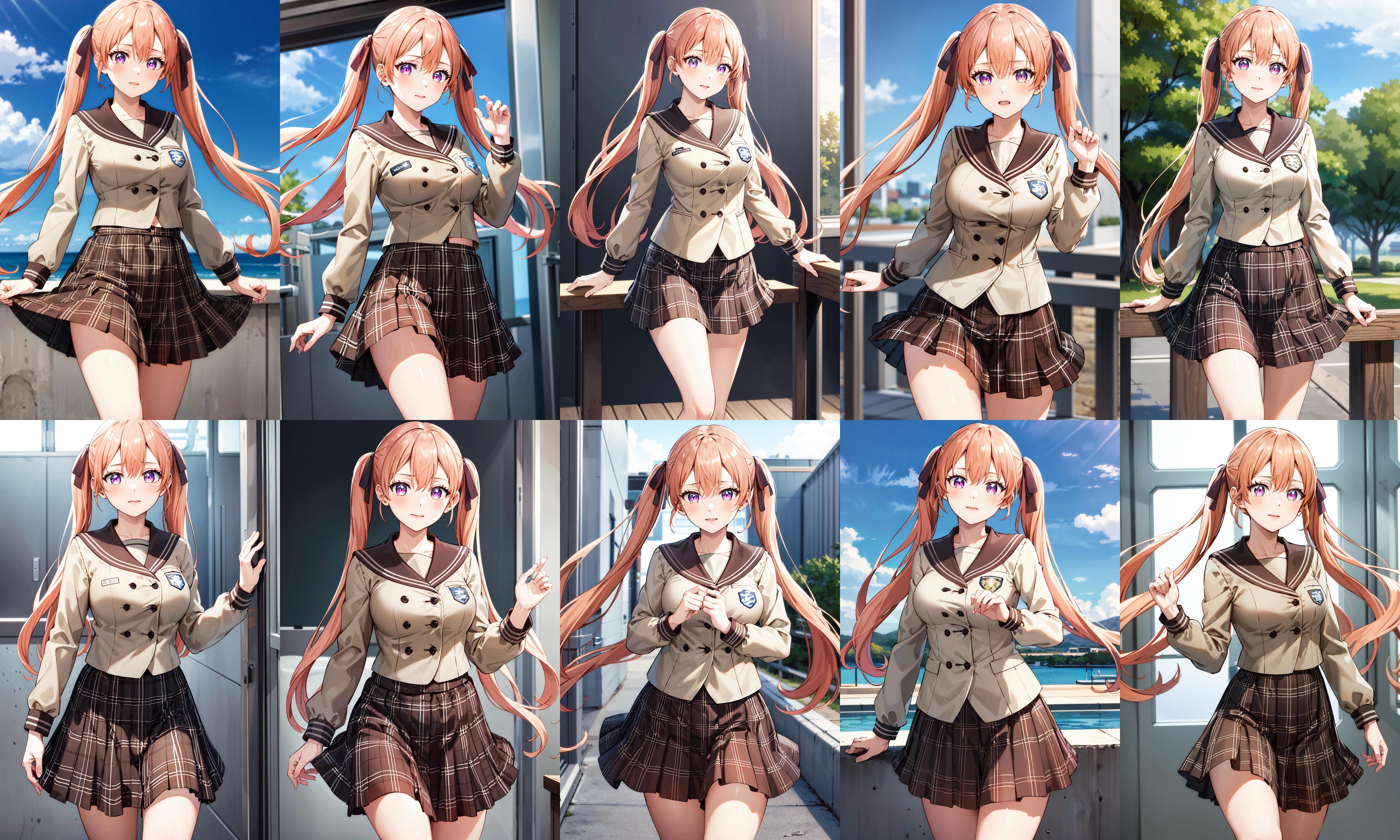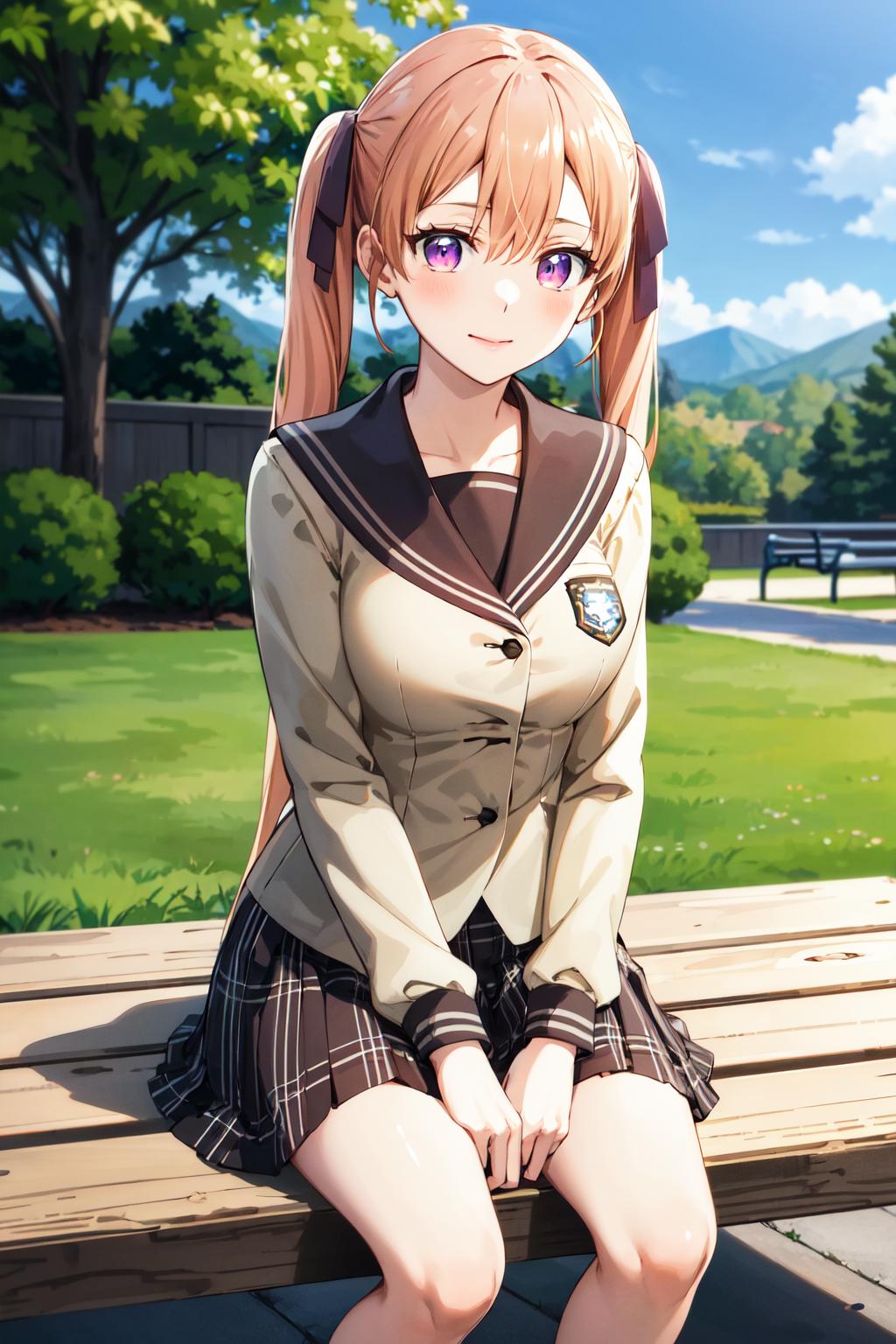 aaerika, long hair, twintails, hair ribbon, school uniform, serafuku, sailor collar, long sleeves, plaid skirt, brown skirt