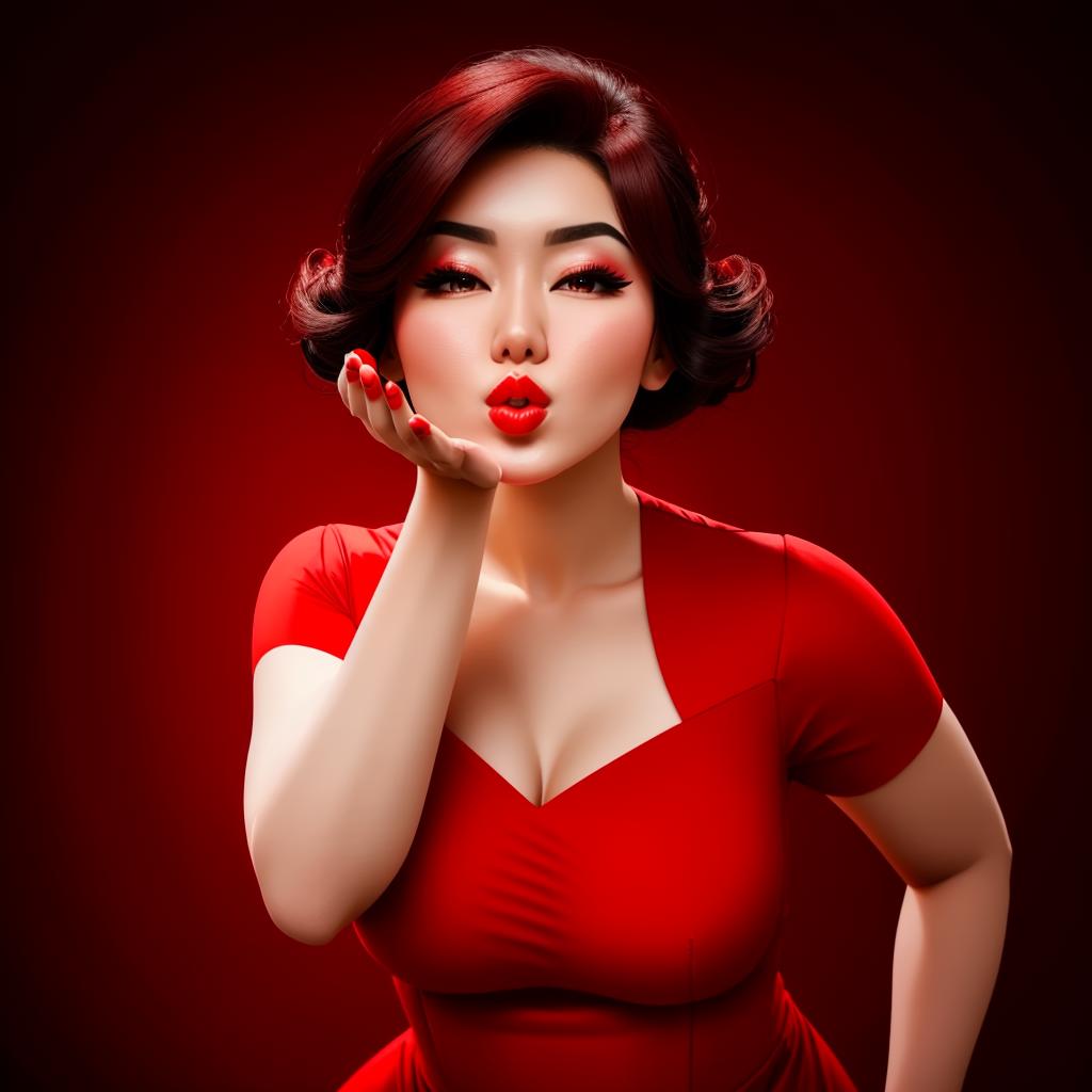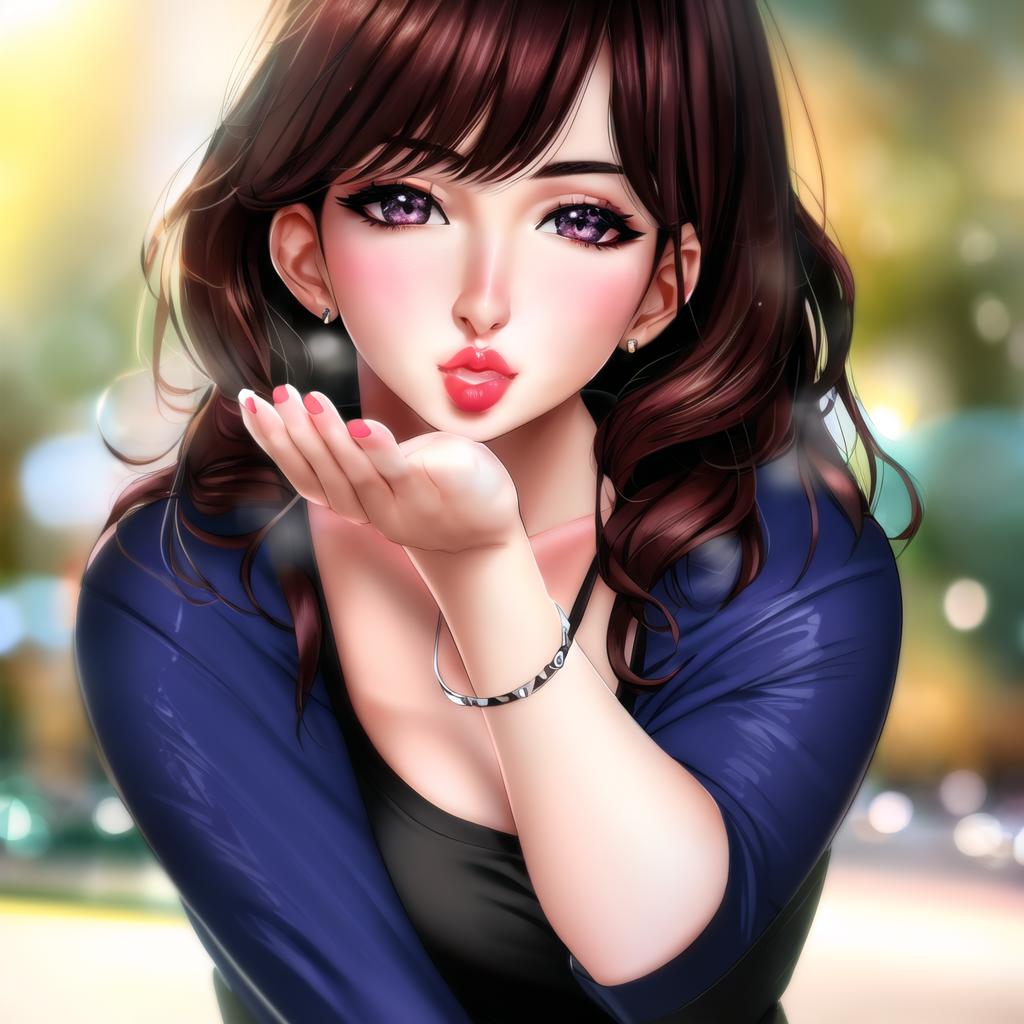 Trigger words: a woman blowing a kiss with her hand, hand in front of face (optional, but more accurate)