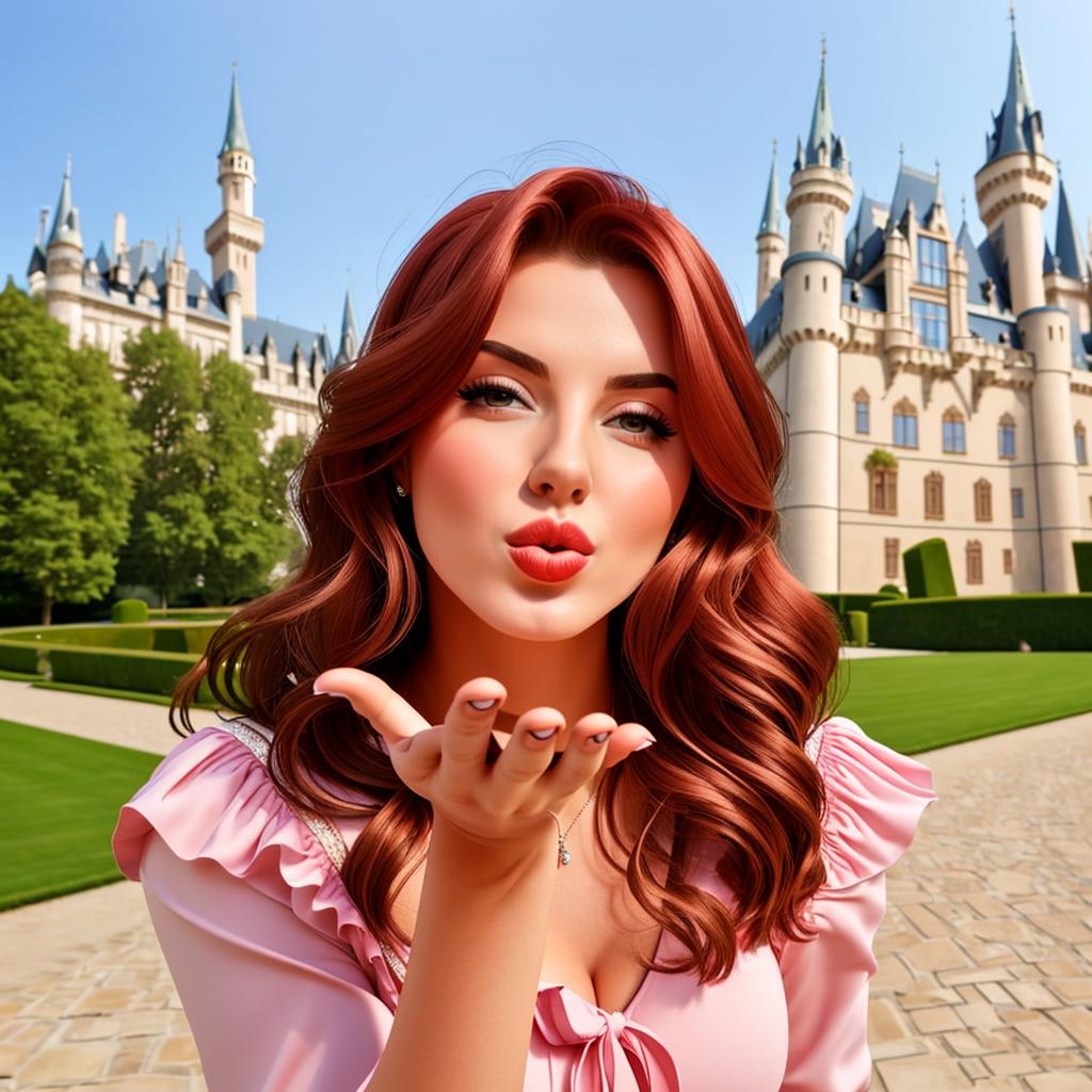 This is my first ever posing model. Photos should depict a woman blowing a kiss with her puckered lips and her hand in front of her face.
