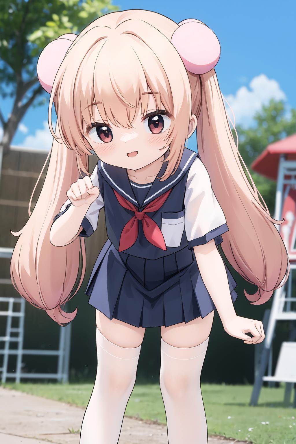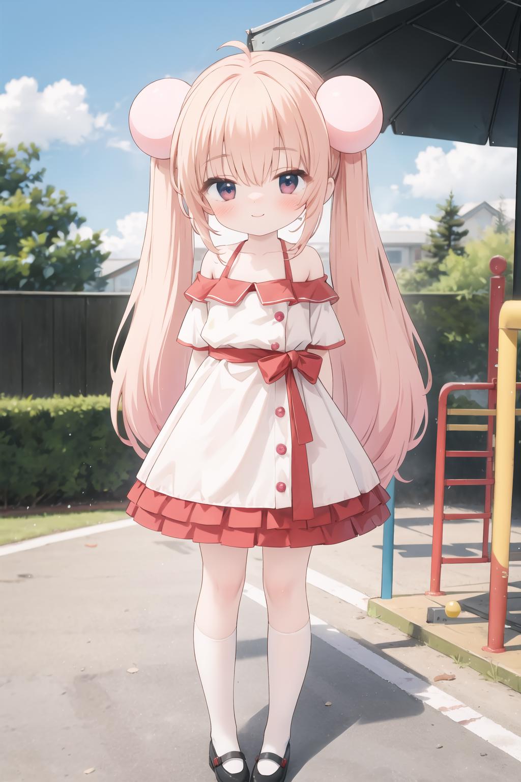 推荐词:hair bobbles, low-tied long hair, long hair, brown hair, very long hair, hair ornament, brown eyes,