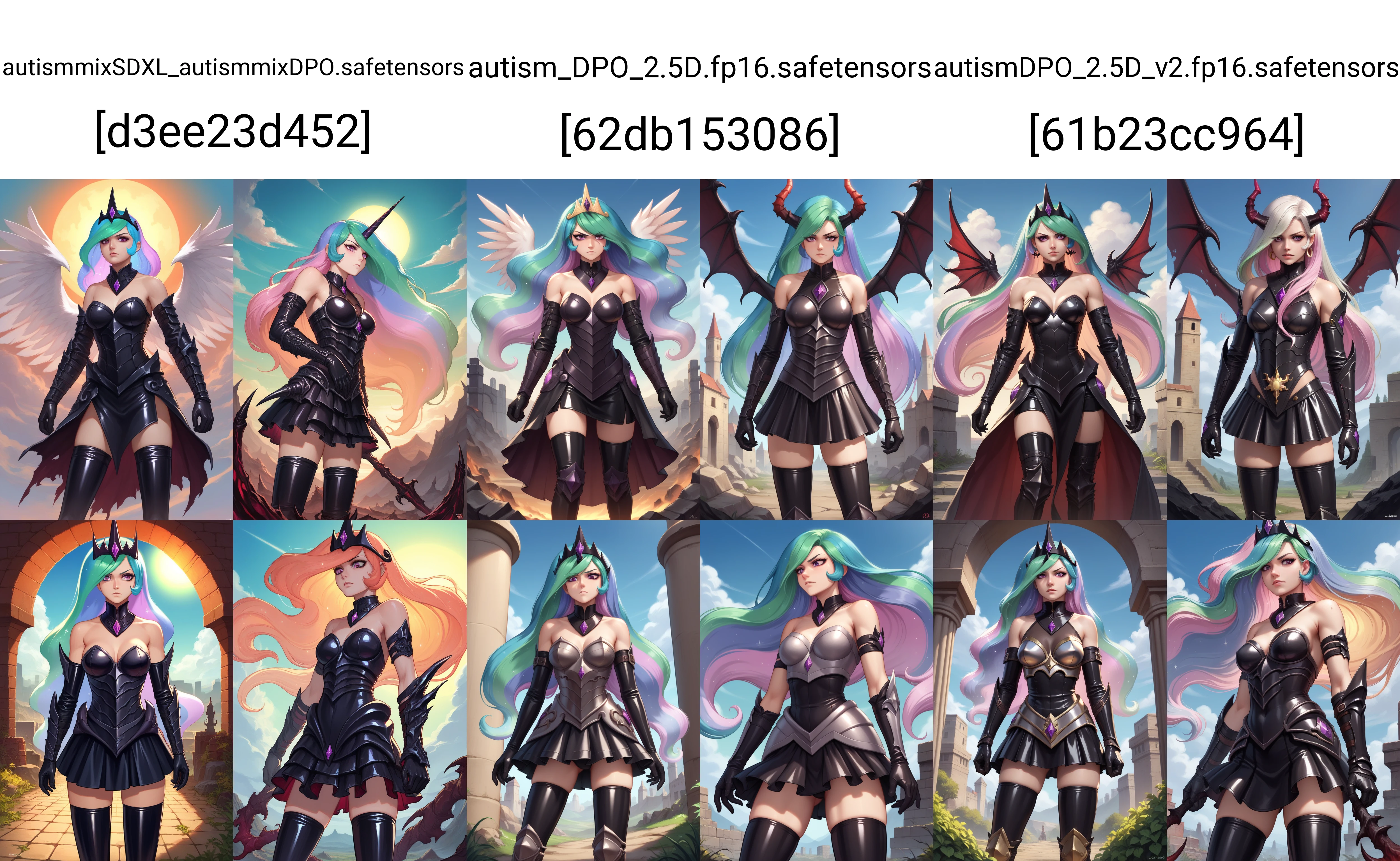 Also, after almost dropping it, I've recently ?????????????? again and even uploaded a new version. It's still decent compared to checkpoints mentioned above when you want to push autismMix's style slightly to 2.5D, have a lot of spare disk space and don't want to use loras for style. Keep in mind that it doesn't bring that much value compared to just using the lora and you actually lose its flexibility.