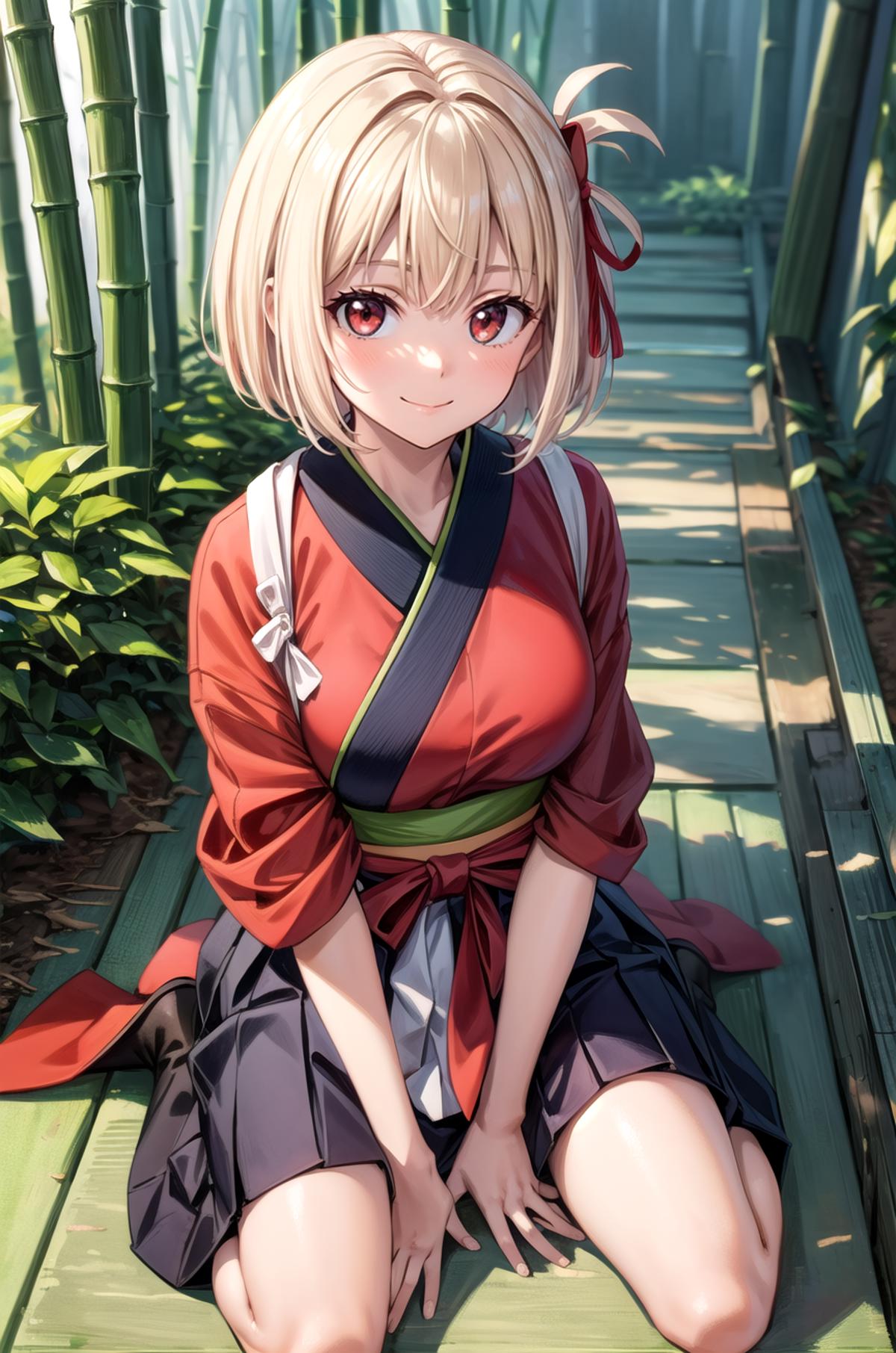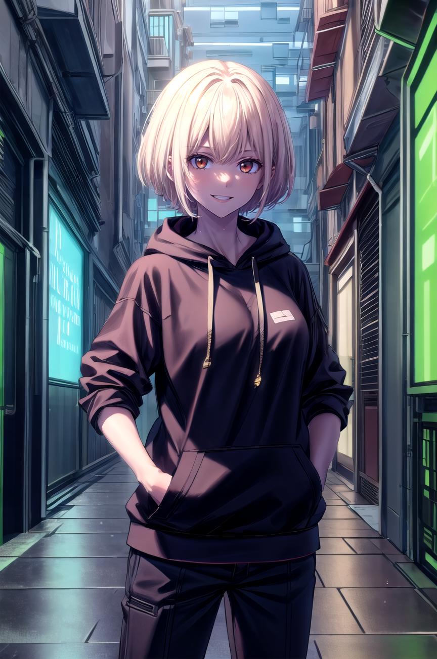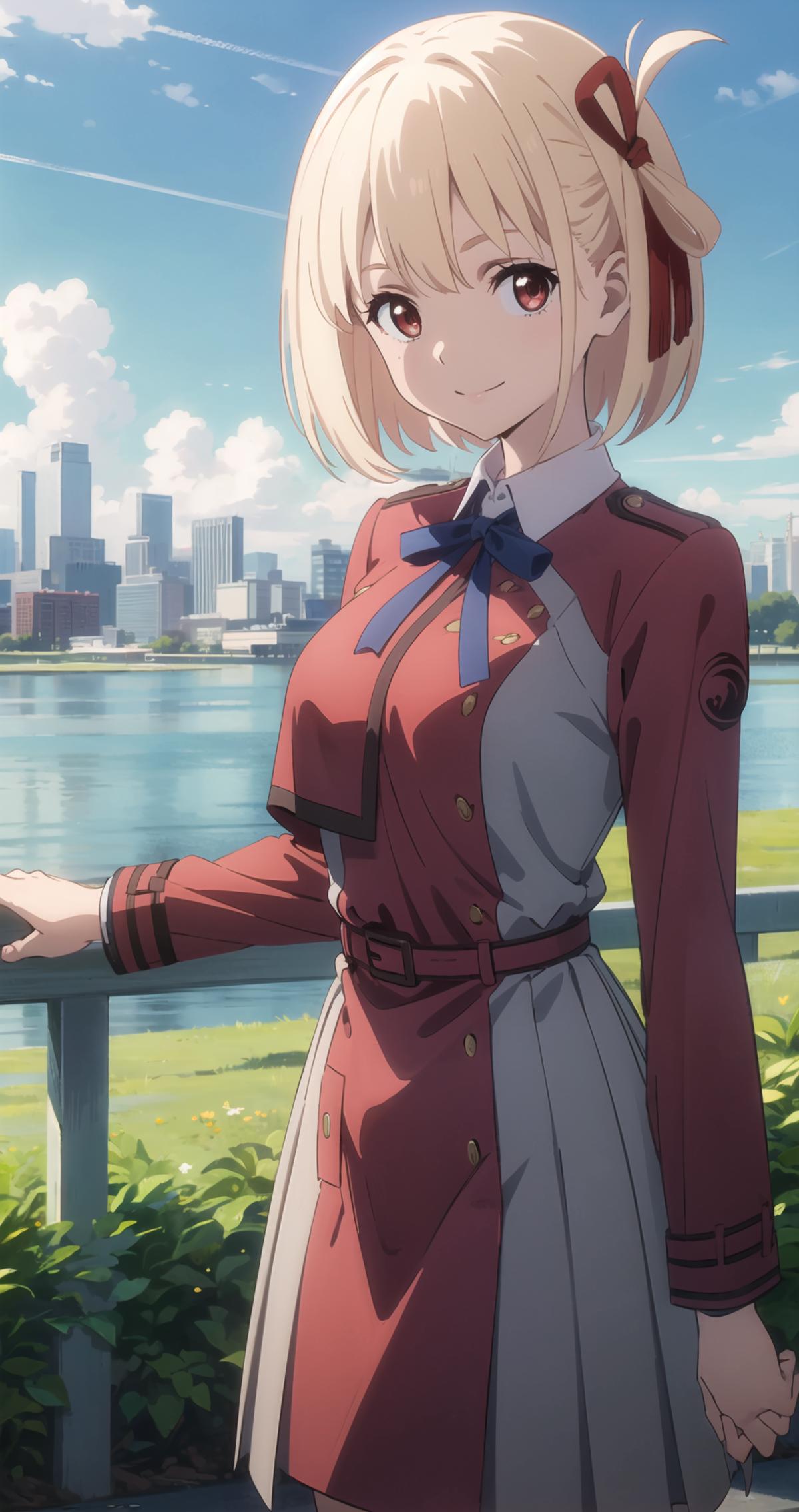 Character trigger : chisato nishikigi, blonde hair, red eyes, short hair, medium breasts