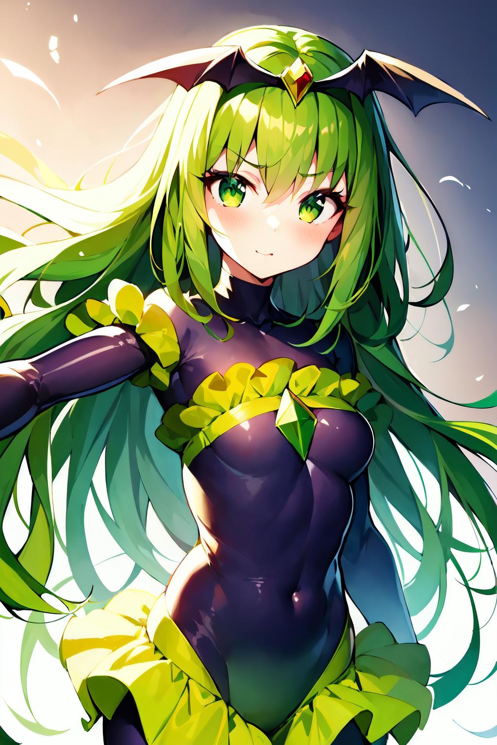 For March: Bad_End_March, green long hair, green long ponytail, green eyes