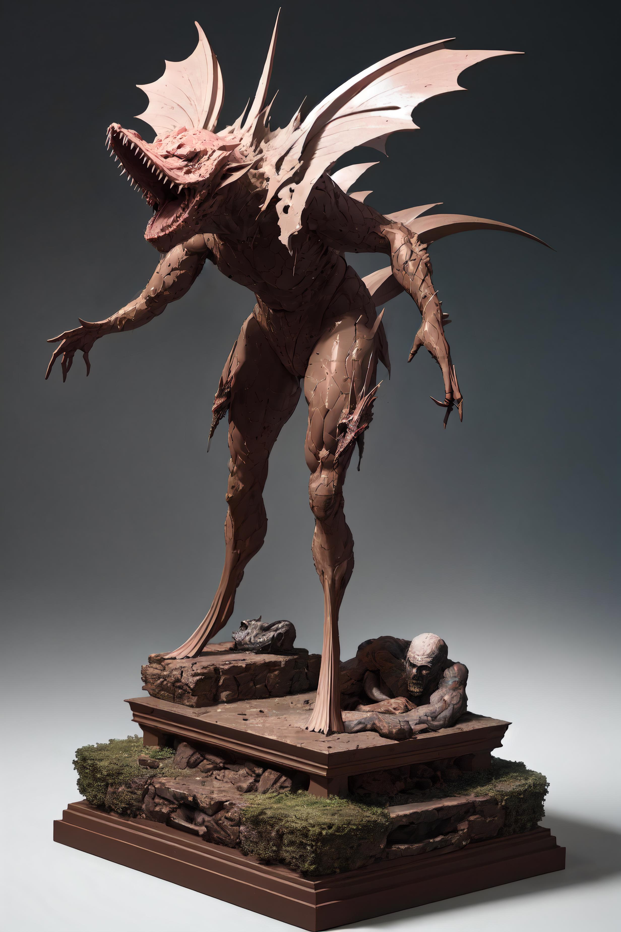 display base, sculpture, figure, simple background,